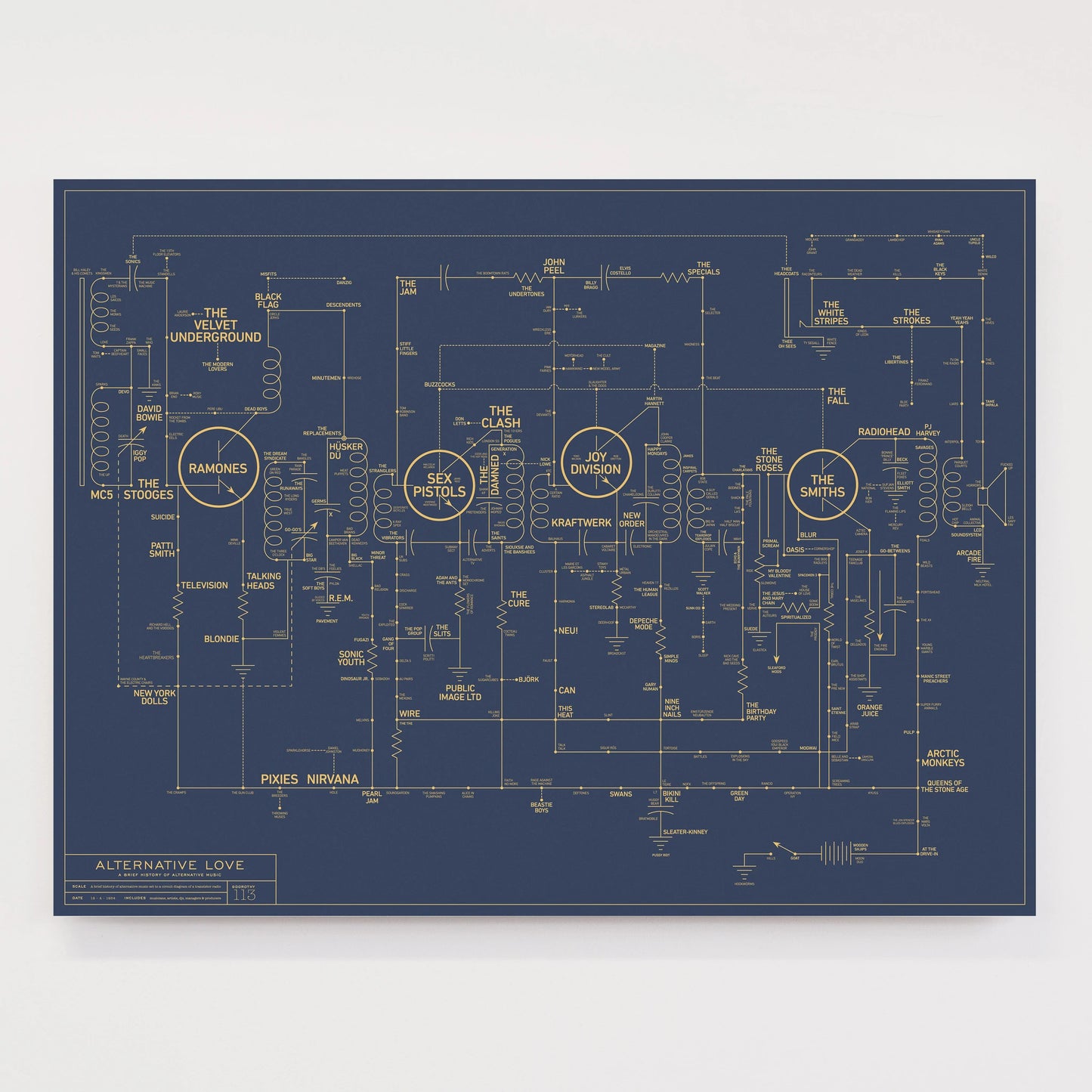 The Alternative Love Blueprint celebrates over 300 musicians, artists, managers and producers who (in our opinion) have been pivotal to the evolution of the alternative and independent music scene, from Bill Hayley & His Comets whose 1950s Rock Around the Clock became the first ever anthem for a rebellious youth, to the DIY ethic of present day bands like Arctic Monkeys and Radiohead.