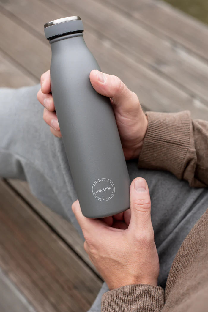 AYA&IDA's 500ml drinking bottle is made to keep your drinks cold for 24 hours and hot for 12. Take the half liter bottle with you to work, school, sports and on holiday. That way you have cold (or hot) drinks - also at the end of the day.
