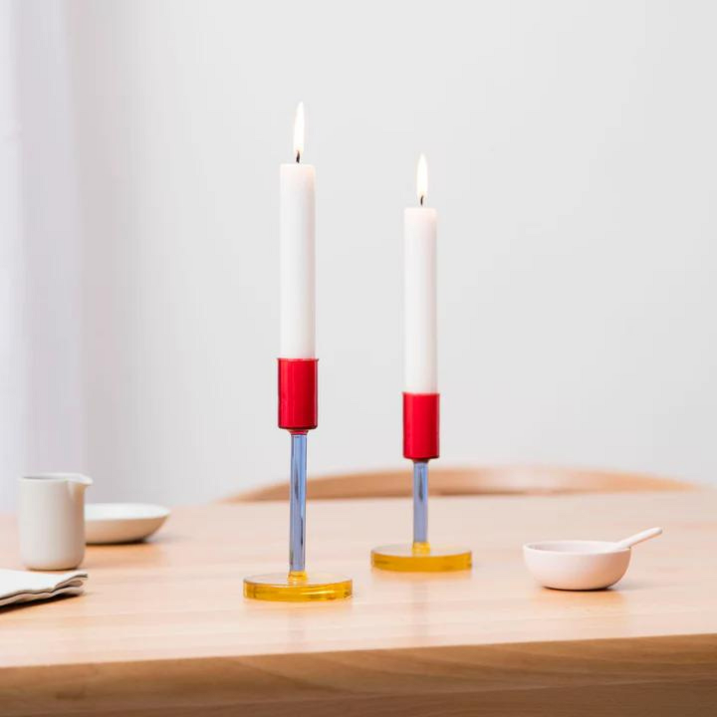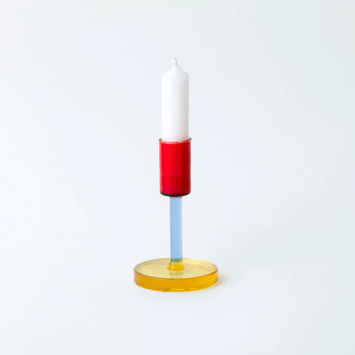 Regular price £21.00Dual colour glass candlestick holder. Crafted from borosilicate glass for a clean and smooth finish. The elegant glass candlestick holders add a splash of colour to the dining table or a stylish shelf. Available in 2 size options, the glass candle holders let your creativity flourish as you play with heights and levels.