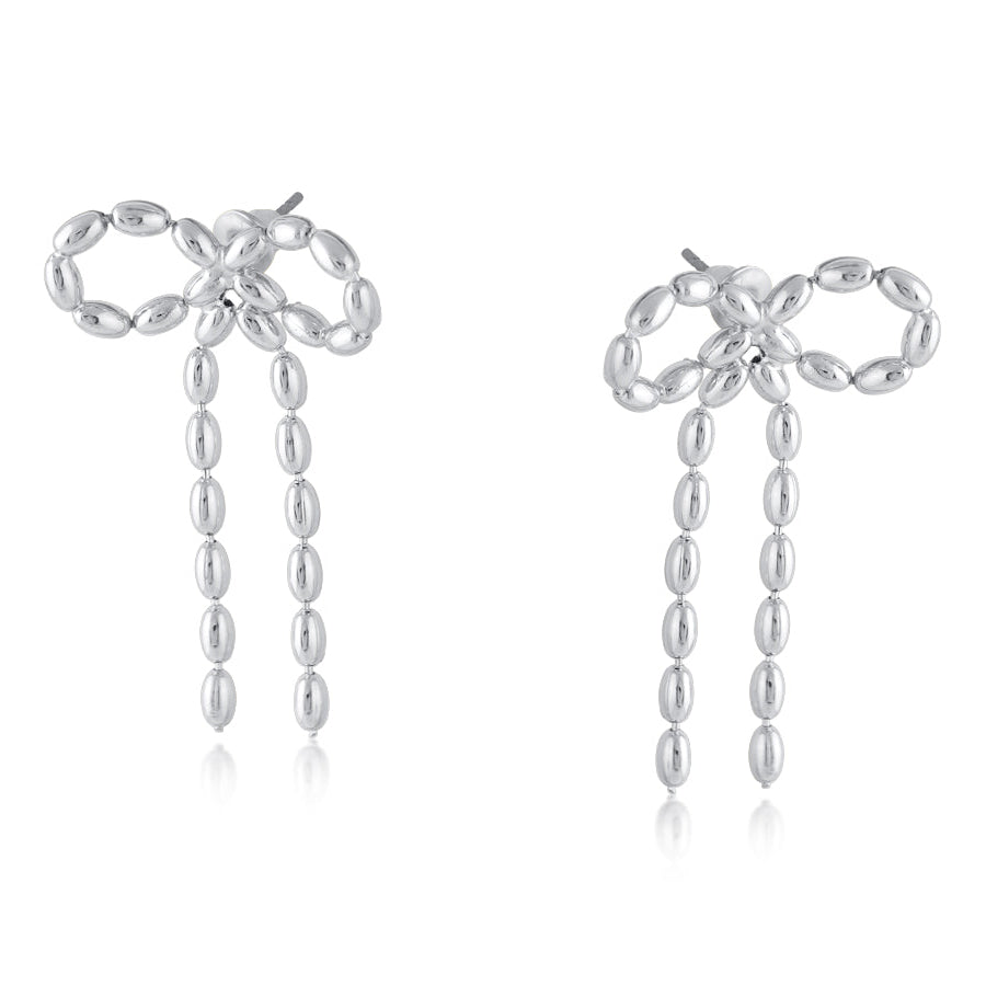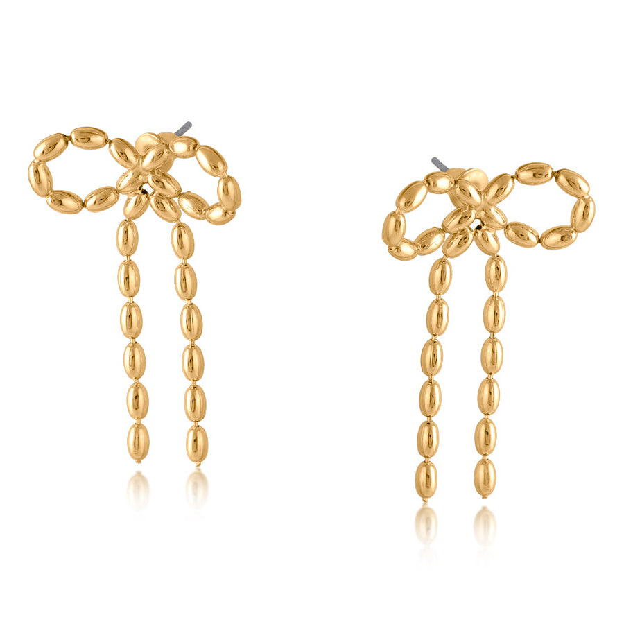 Handcrafted in gold or silver plating, these bow-shaped earrings combine a high-shine finish with a modern, refined design. A beautiful accessory that adds a chic and sophisticated touch to any outfit.