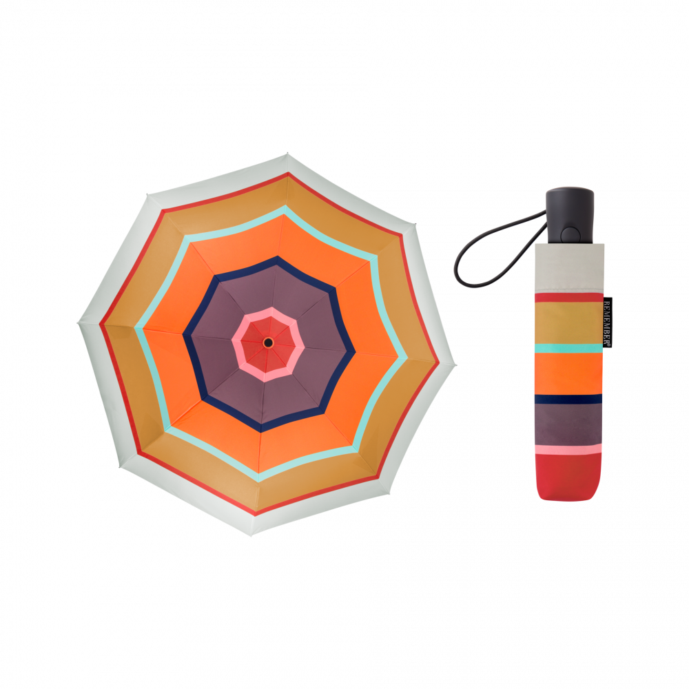 This handy, brightly coloured pocket umbrella defies every downpour and fits in every handbag. At the touch of a button, the bright colours put you in a good mood - even in really bad weather. And when the shower is over? Quickly press the button again, push the umbrella together and in the twinkling of an eye it disappears again in the matching colour protective cover.