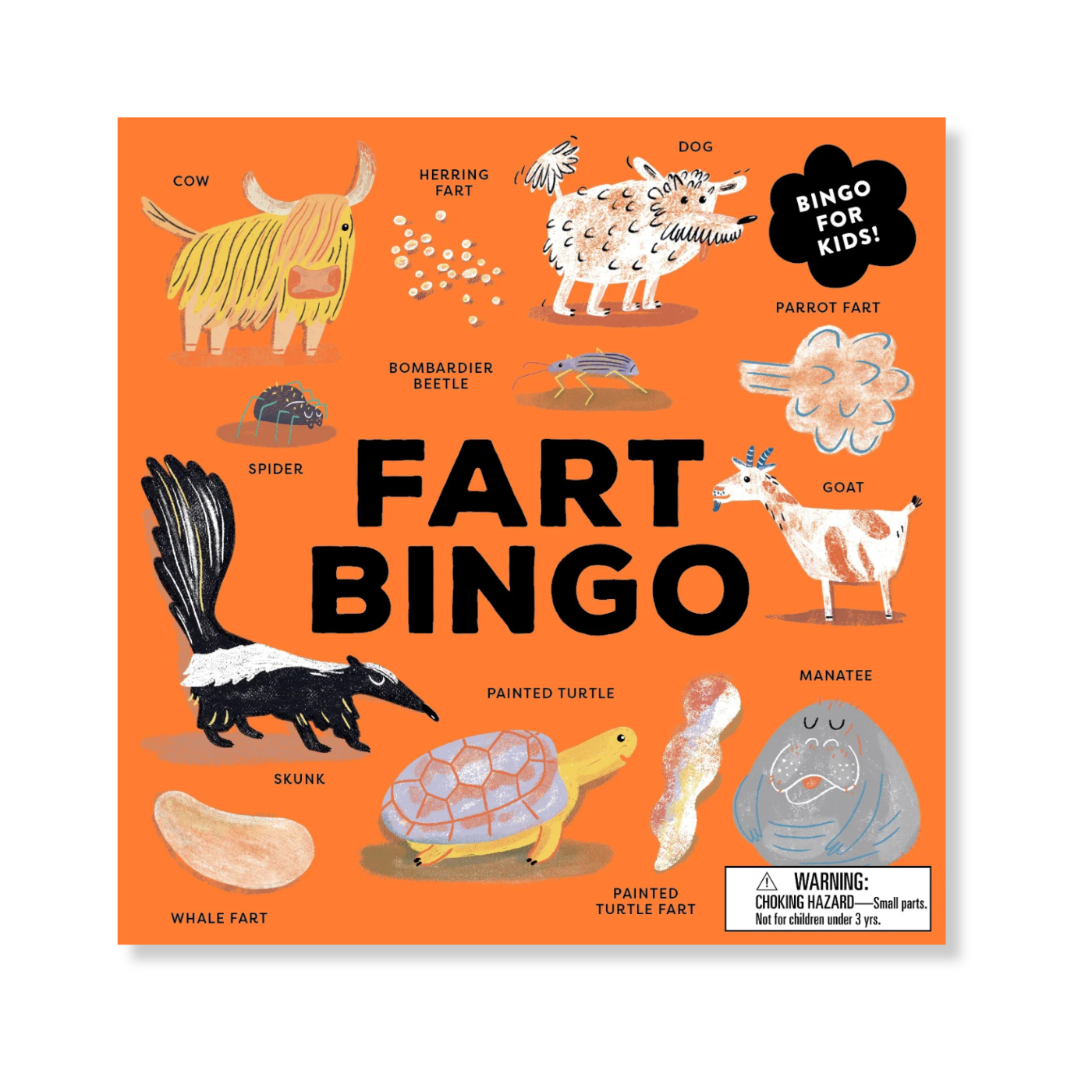 Explore the silly side of nature with 24 animals and their uniquely shaped, sized and coloured farts featured in this family bingo game. With hilarious illustrations, fascinating farty facts and quick to learn rules, Fart Bingo will have you giggling and guffawing in no time.