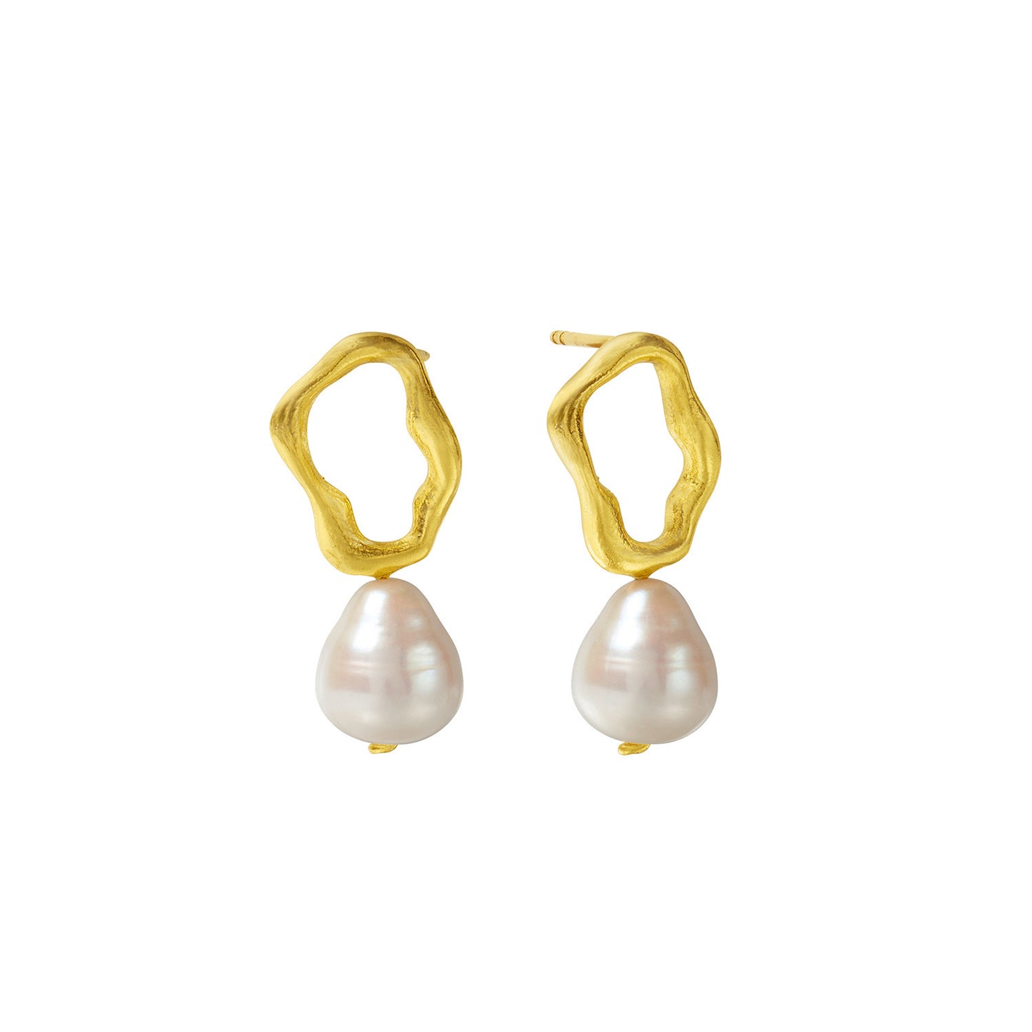 Handmade in the Ottoman Hands Istanbul workshop, these contemporary stud earrings feature natural pearls held by an organically shaped gold design for a fluid feel. Wear it with jeans or your favourite party dress, this pair will become your everyday favourite.