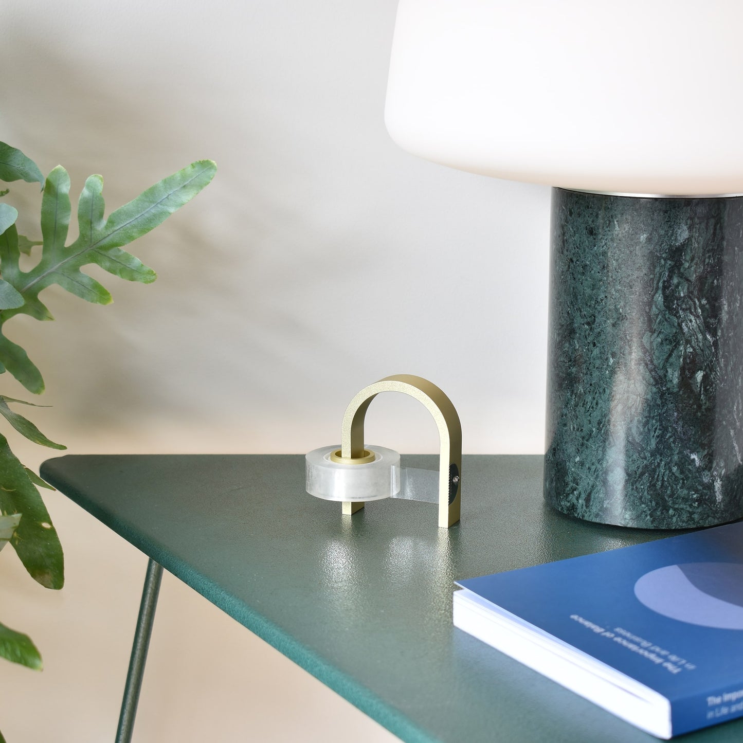 The all metal construction Hoop tape dispenser takes a simple unassuming form that brings elegance to any desktop space whilst also being an extremely durable and high performing piece of kit. The combination of precision machined aluminium and custom made stainless steel blade ensure a clean cut through the tape.
