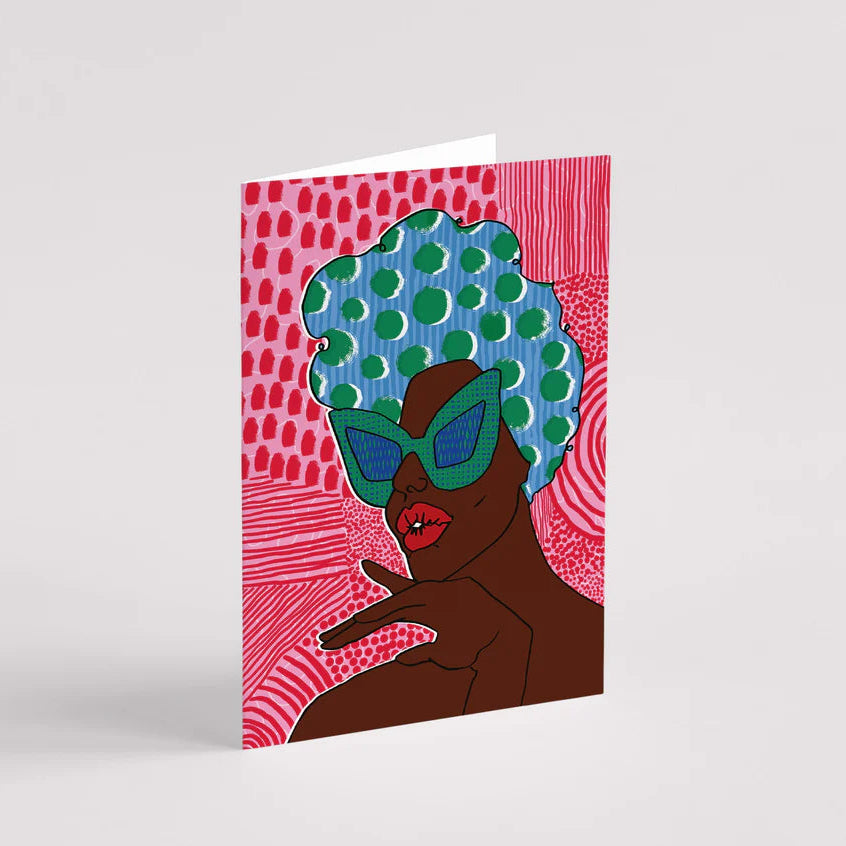 Super cute greeting card featuring my Dorcas Creates Kemi illustration - perfect to gift someone on a special occasion