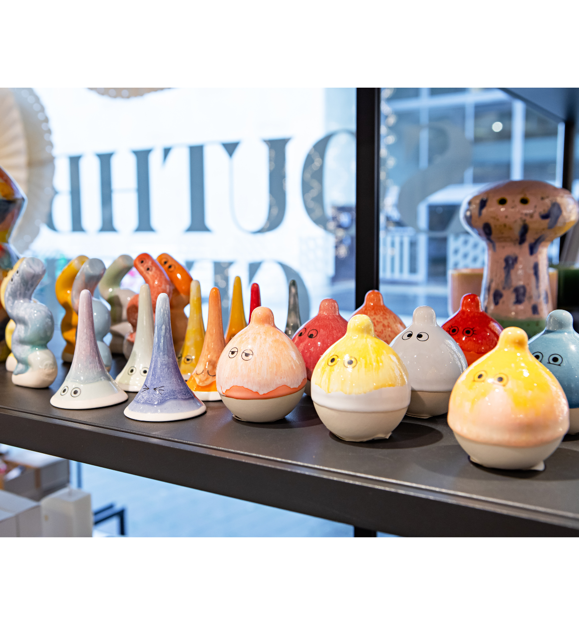 Each Familia member is hand-cast in solid, heavy white porcelain. The figurines are glazed in wide variety of unique hi-fire colours and finally given life with a pair of eyes.