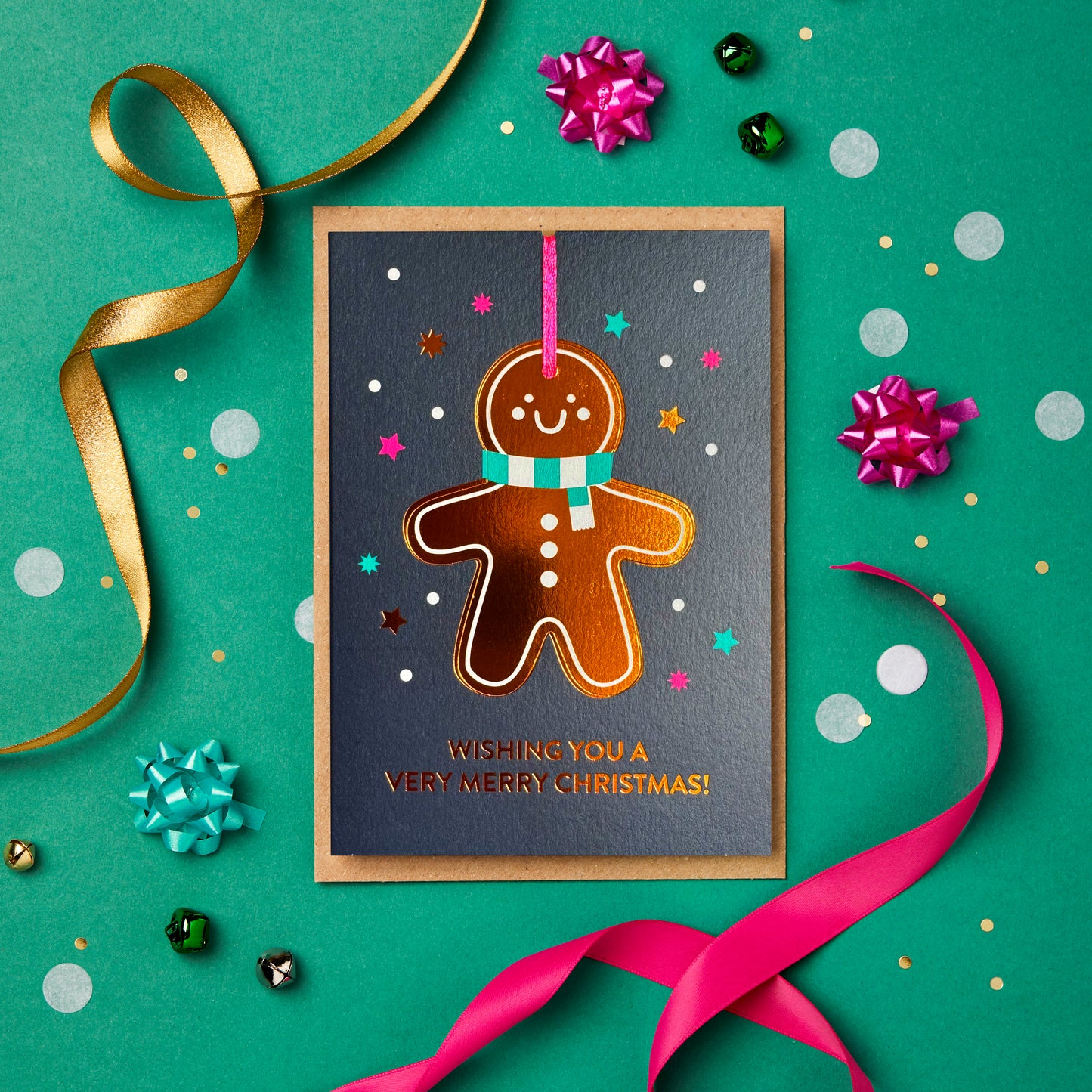 Christmas bauble greeting card finished with hot foil and a satin ribbon, the bauble can be popped out and hung on the tree to keep for years to come with your Christmas wishes on the back.