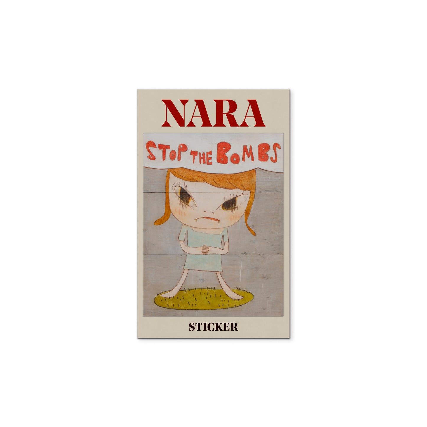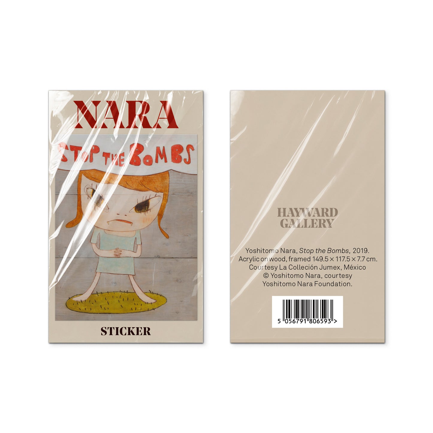 A sticker featuring Nara's work Stop the Bombs, 2019. Created exclusively for the Yoshitomo Nara exhibition at the Hayward Gallery.