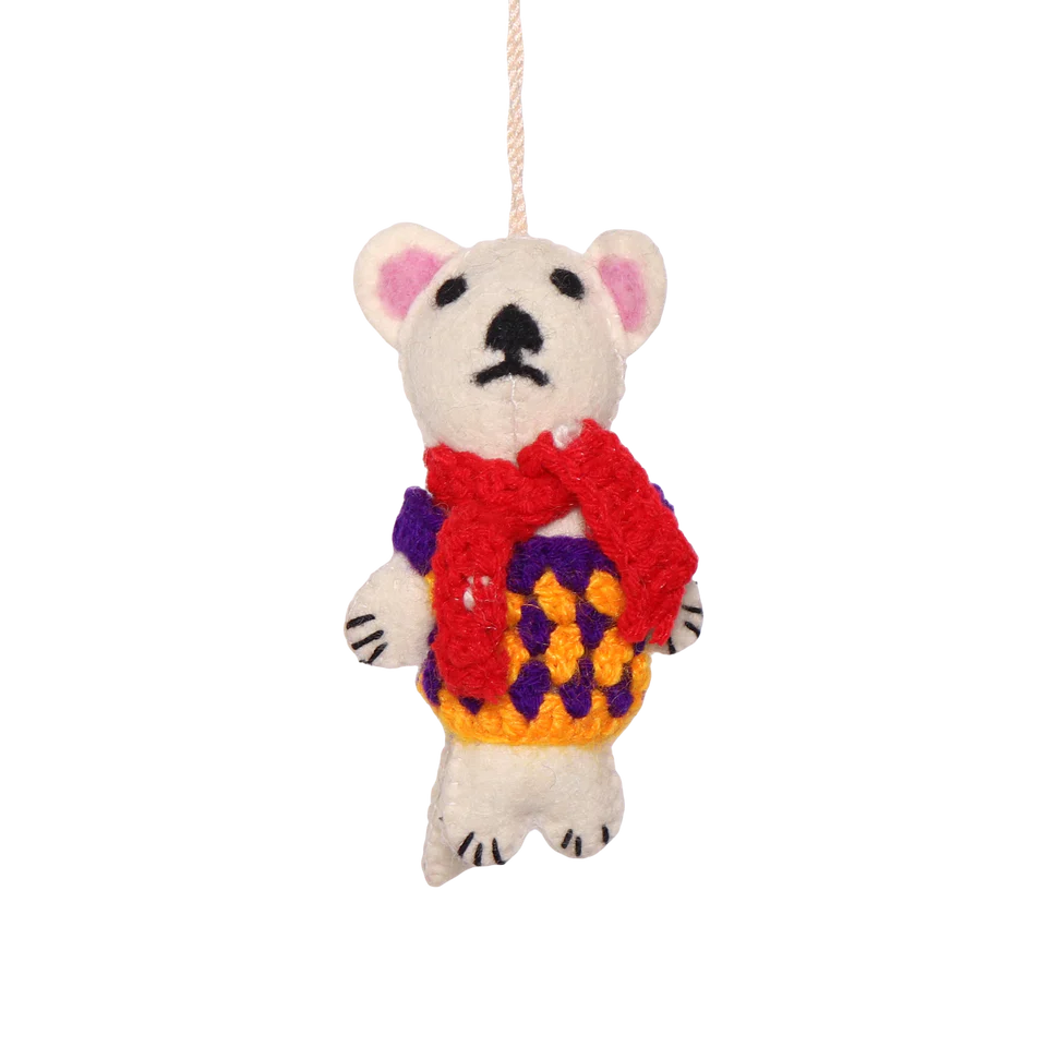 Folded wool blanket in a "lines" design and fringe edge, with the brand label in the centre.