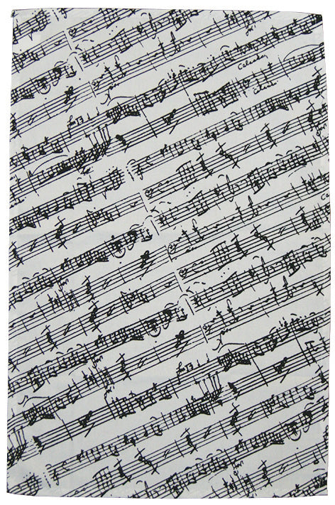 A stylish tea towel adorned in a beautiful print of music notes and staves, to introduce a musical style to your kitchen.