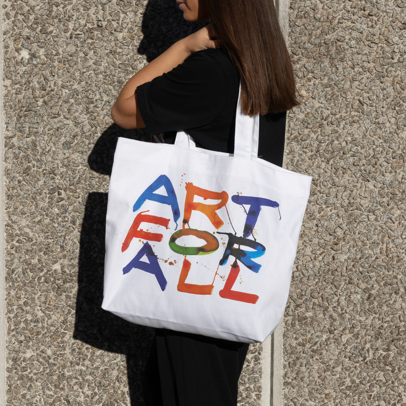 Exclusive tote bag featuring Gilbert & George's artwork ART FOR ALL, 2023 from the 21ST CENTURY PICTURES exhibition at the Hayward Gallery.