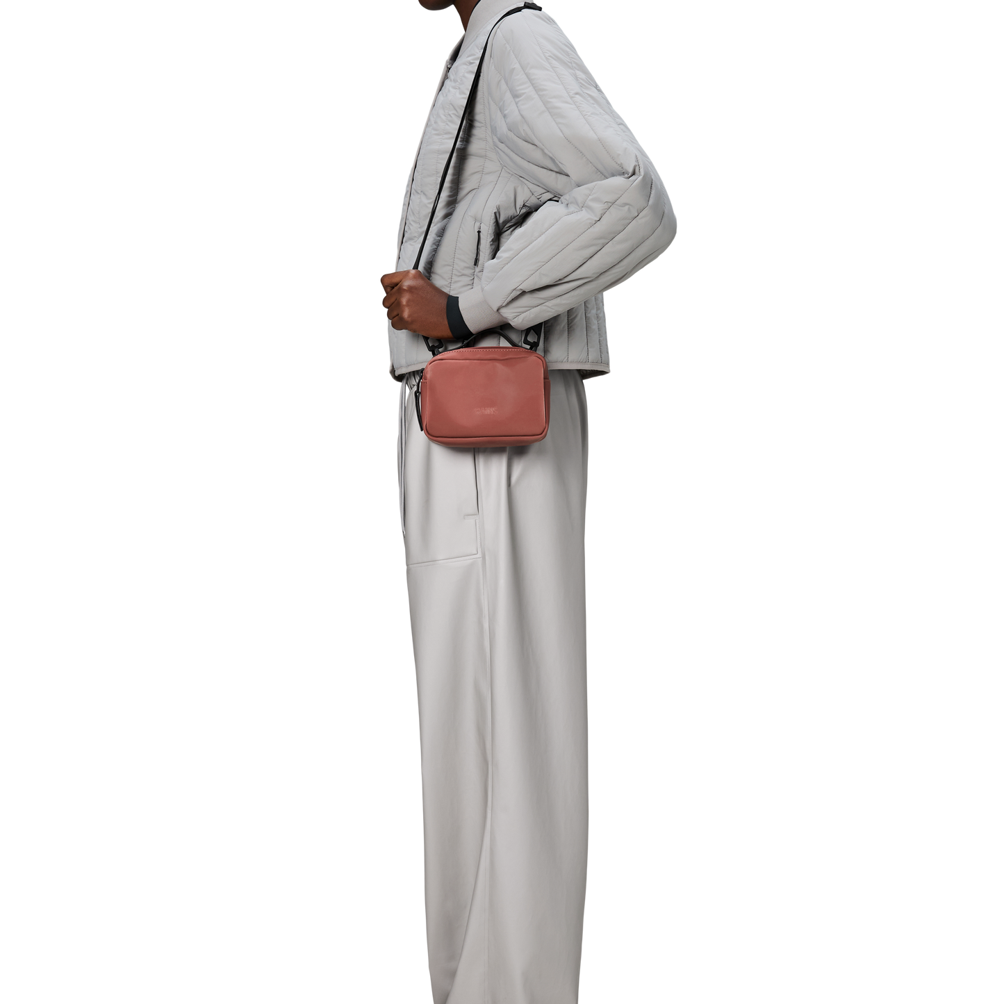 Box Bag Micro is cut from Rains' signature PU fabric, engineered for carrying strength, durability and a smooth feel.