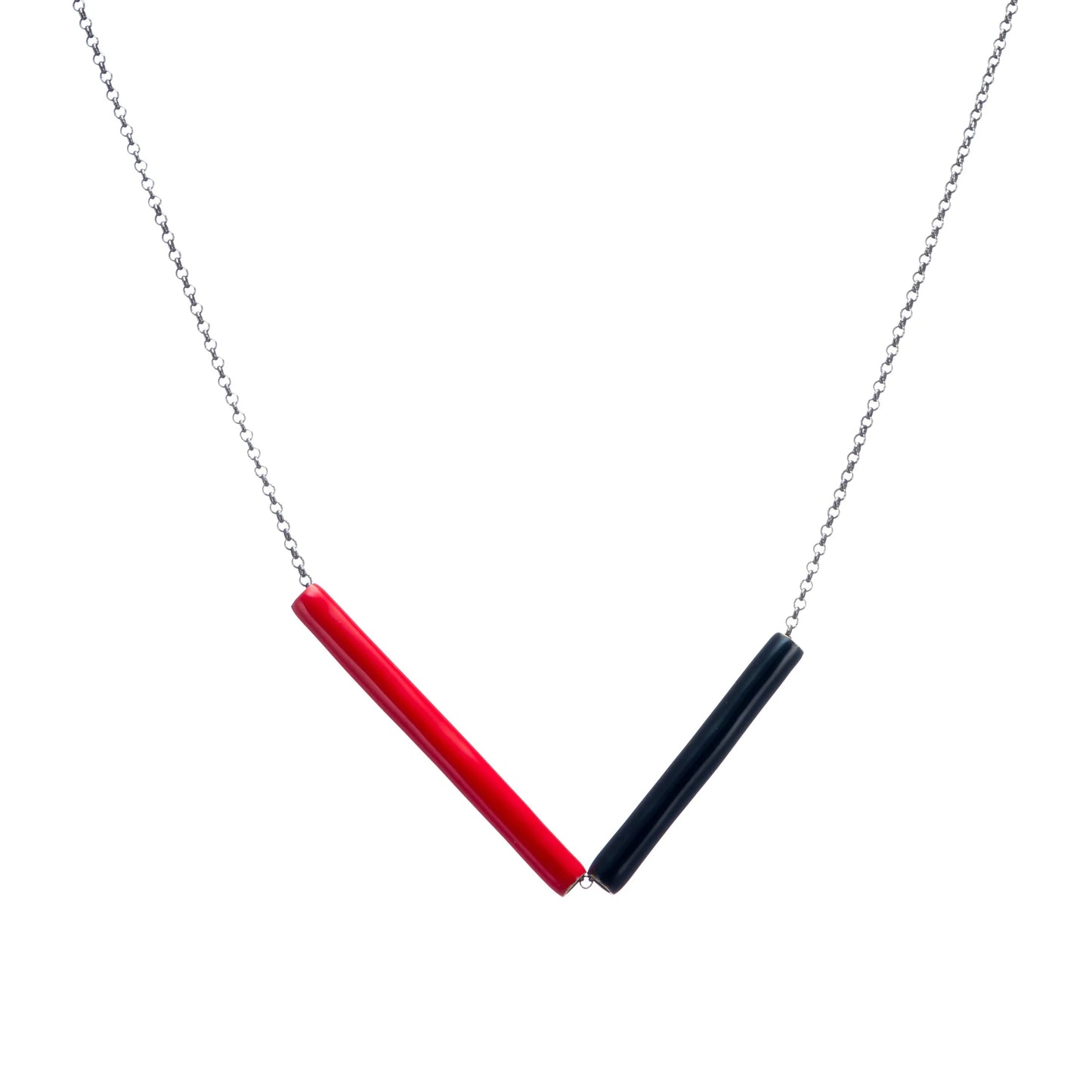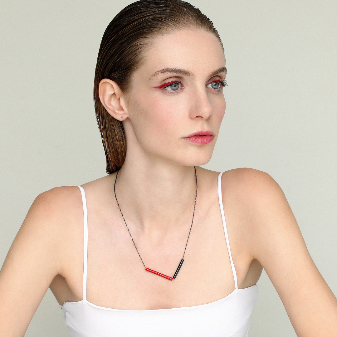 - Material: The cylinder of the necklace is made of brass with enamel coating. The chain of the necklace is made of silver 925 with black platinum plating.