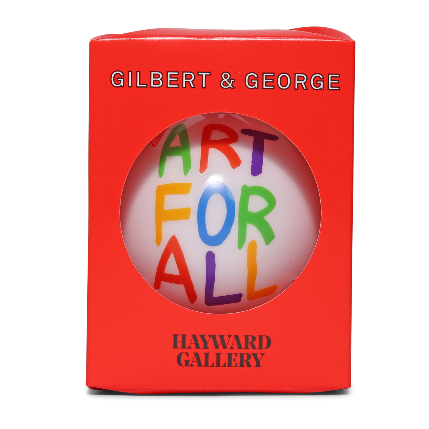 Christmas bauble exclusively designed for the Hayward Gallery Shop as part of the 21ST CENTURY PICTURES exhibition featuring Gilbert & George's artwork ART FOR ALL, 2023.