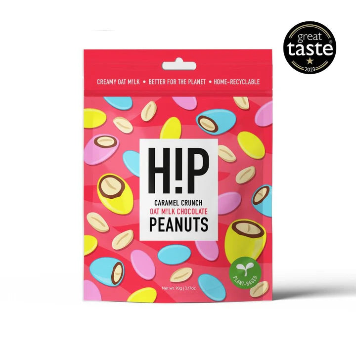 H!P source the finest cocoa from Colombia and combine with delicious creamy oat m!lk to create their unique H!P Oat M!lk Chocolate. They've encased roasted peanuts in their deliciously smooth chocolate, infused with buttery caramel. Finished in a crunchy, colourful sugar shell.