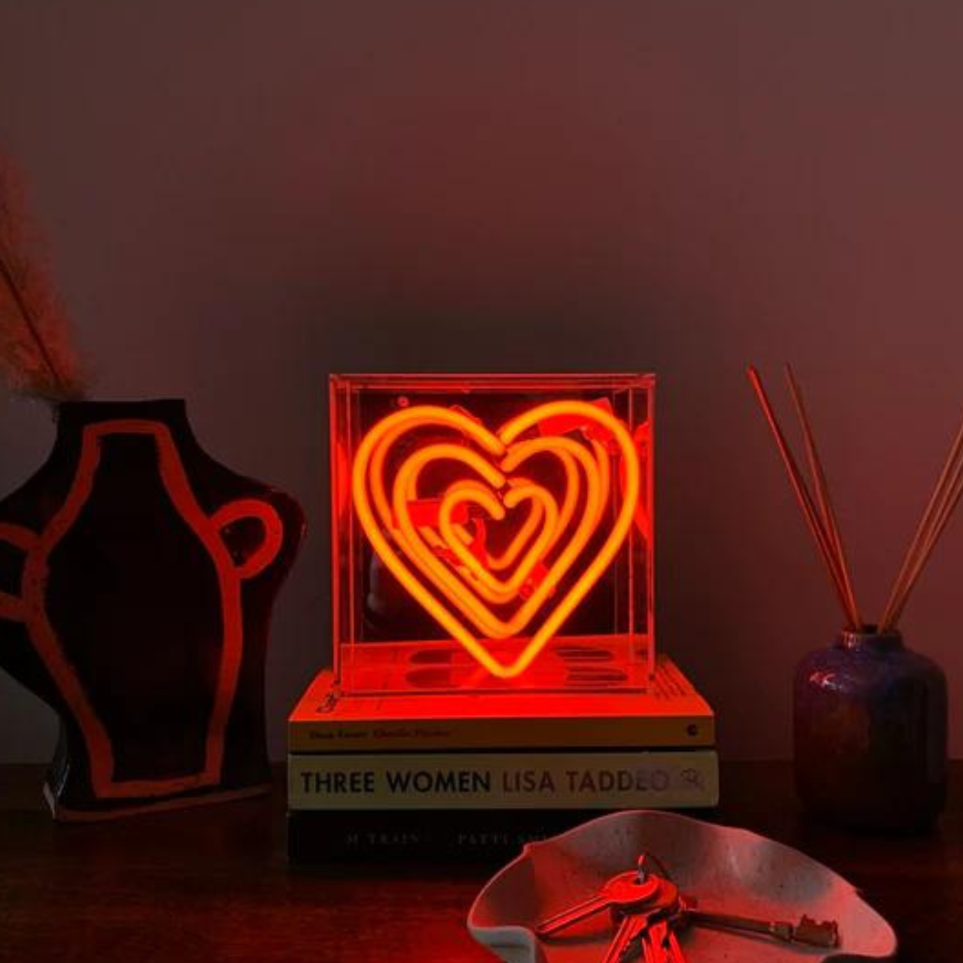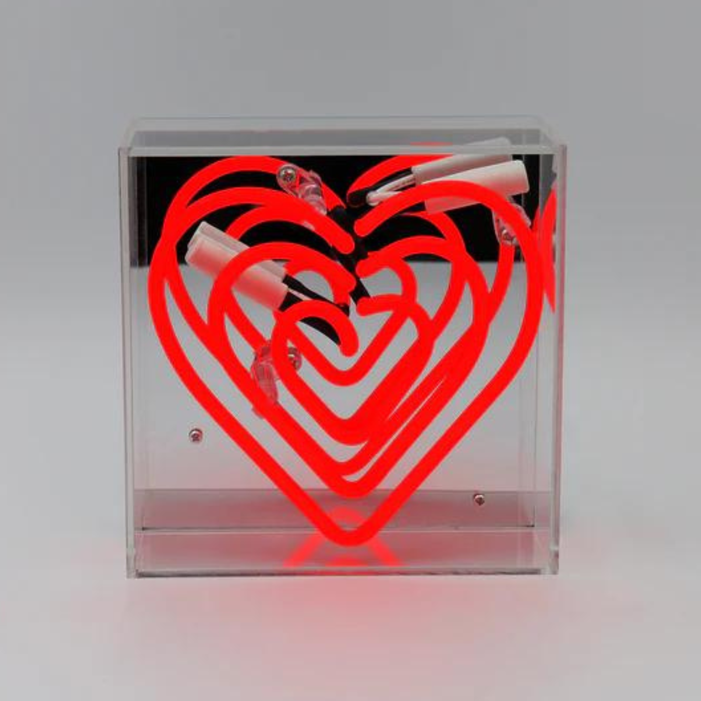 The ‘Heart’ glass neon box sign brings a cool authentic glow to your home. Playful retro style. It’s a must-have statement lighting piece that also makes a fabulous gift!