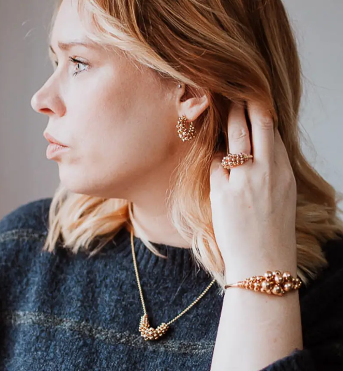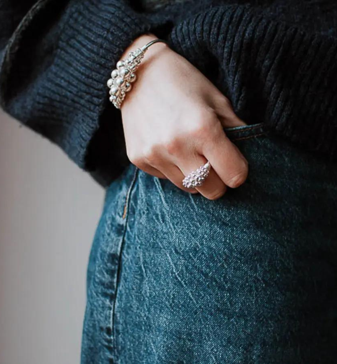 Featuring a cluster of silver-plated and gold-plated metal beads wrapped around a solid 18mm sterling silver base, we made the Rhea Silver Cuff to reflect her protective and courageous nature, and wanted to create a piece of jewellery that would carry a similar meaning throughout, gifting not only for yourself but all the mother figures in your life.