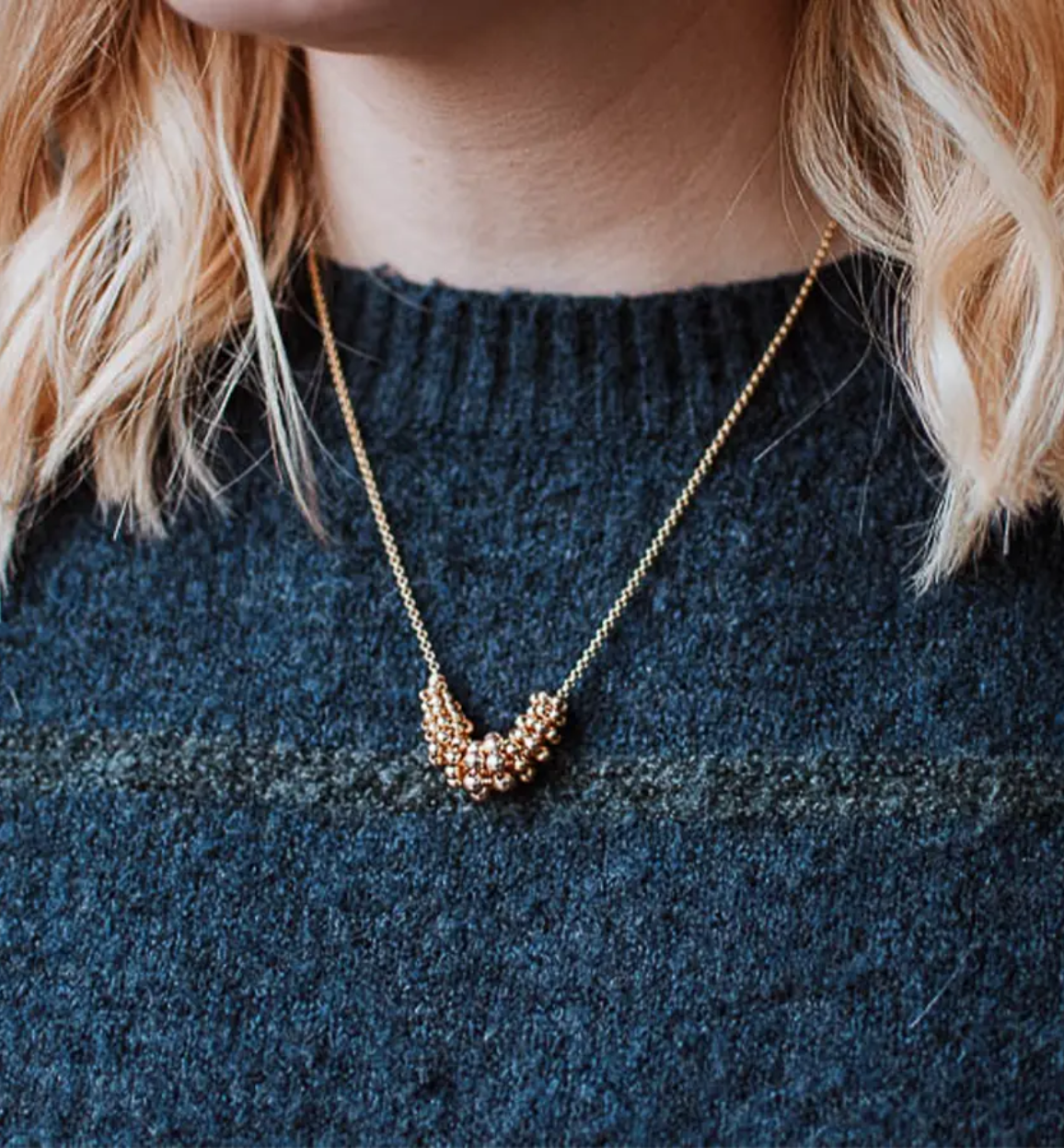 Featuring a cluster of gold-plated metal beads wrapped around a solid 18mm vermeil base, we made the Rhea Gold Necklace to reflect her protective and courageous nature, and wanted to create a piece of jewellery that would carry a similar meaning throughout, gifting not only for yourself but all the mother figures in your life.