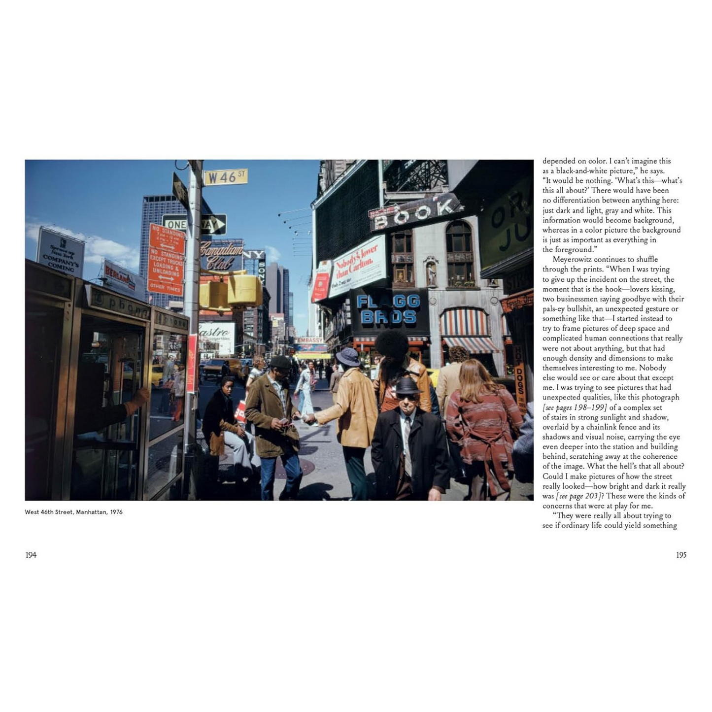 In this book, Meyerowitz tells the story of his early days as a photographer when he was told that serious photographers took black & white pictures. 'But why?' he asked, 'when the world is in colour?' He proceed to buy a colour camera and various rolls of films and to read manuals and experiment with colour techniques: a passion he continued to pursue all his life...