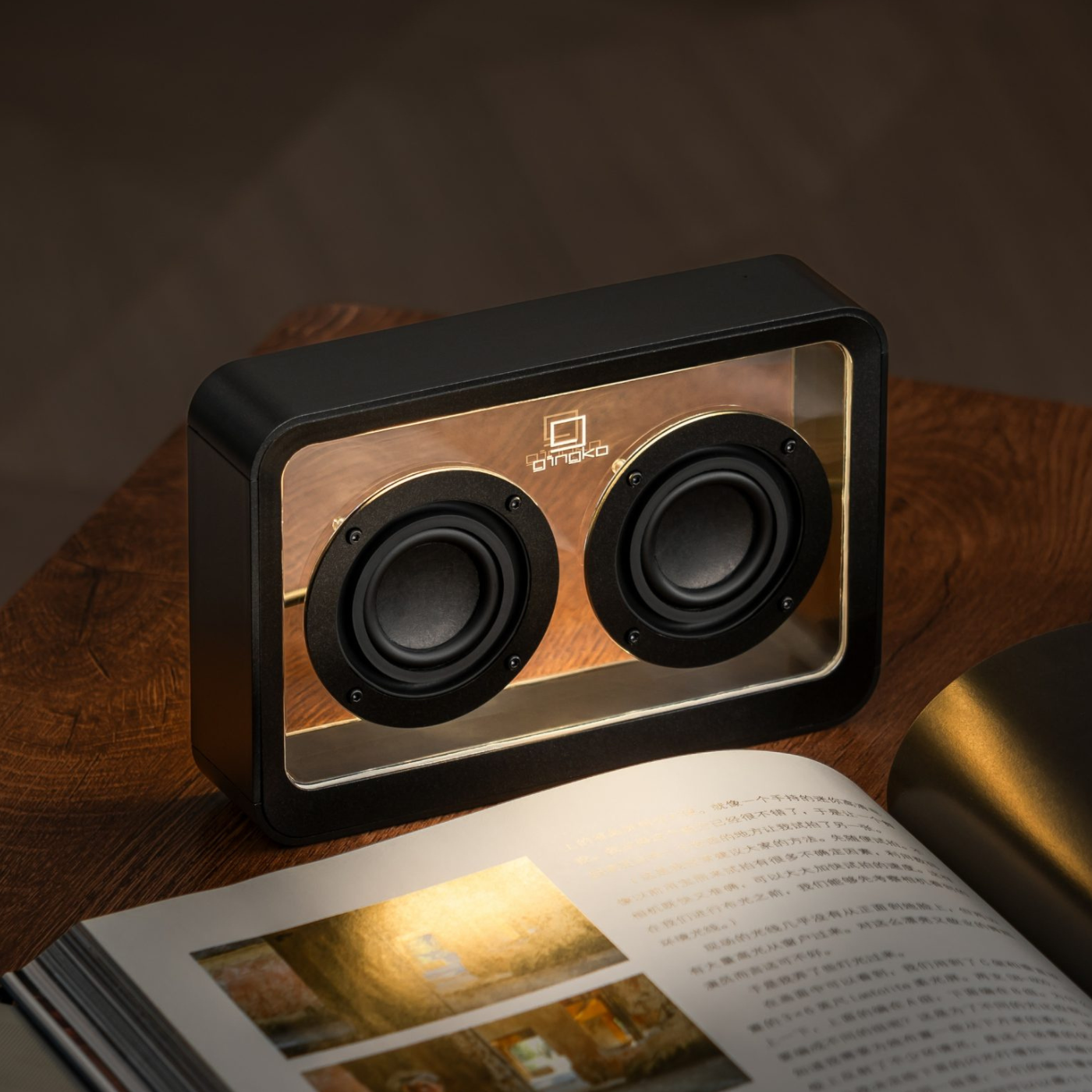 Introducing the Mage See-Through Bluetooth Speaker, a fusion of innovative design and acoustic excellence. This Bluetooth speaker is a masterpiece of form and function, available in a sleek Matte Black finish. Its unique see-through structure makes it a visually stunning piece and offers an immersive sound experience.