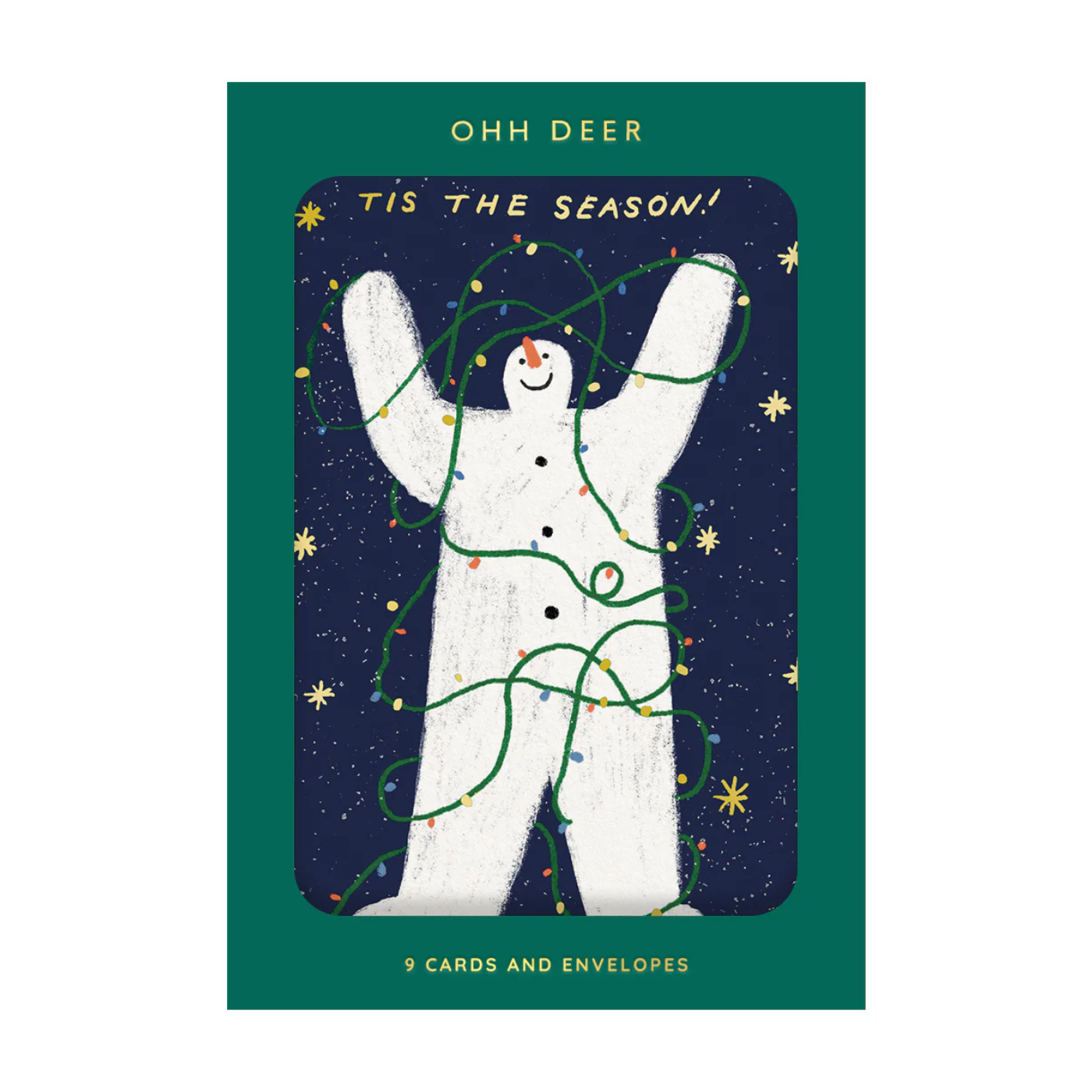 Spread holiday cheer with this pack of Tis The Season Snowman Christmas Cards. Featuring festive snowman designs by Max Machen, these 9 cards are a delightful way to send your warmest greetings this season.