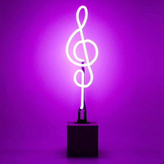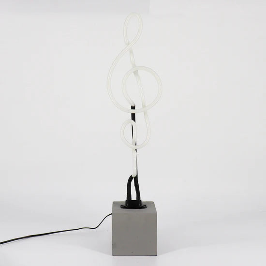 The neon ‘Clef' sign for the music lover. This table top neon lamp is made by hand with real glass neon and is mounted on a stylish concrete base. Fun and unique lighting, championing that real retro neon glow you just can’t beat.