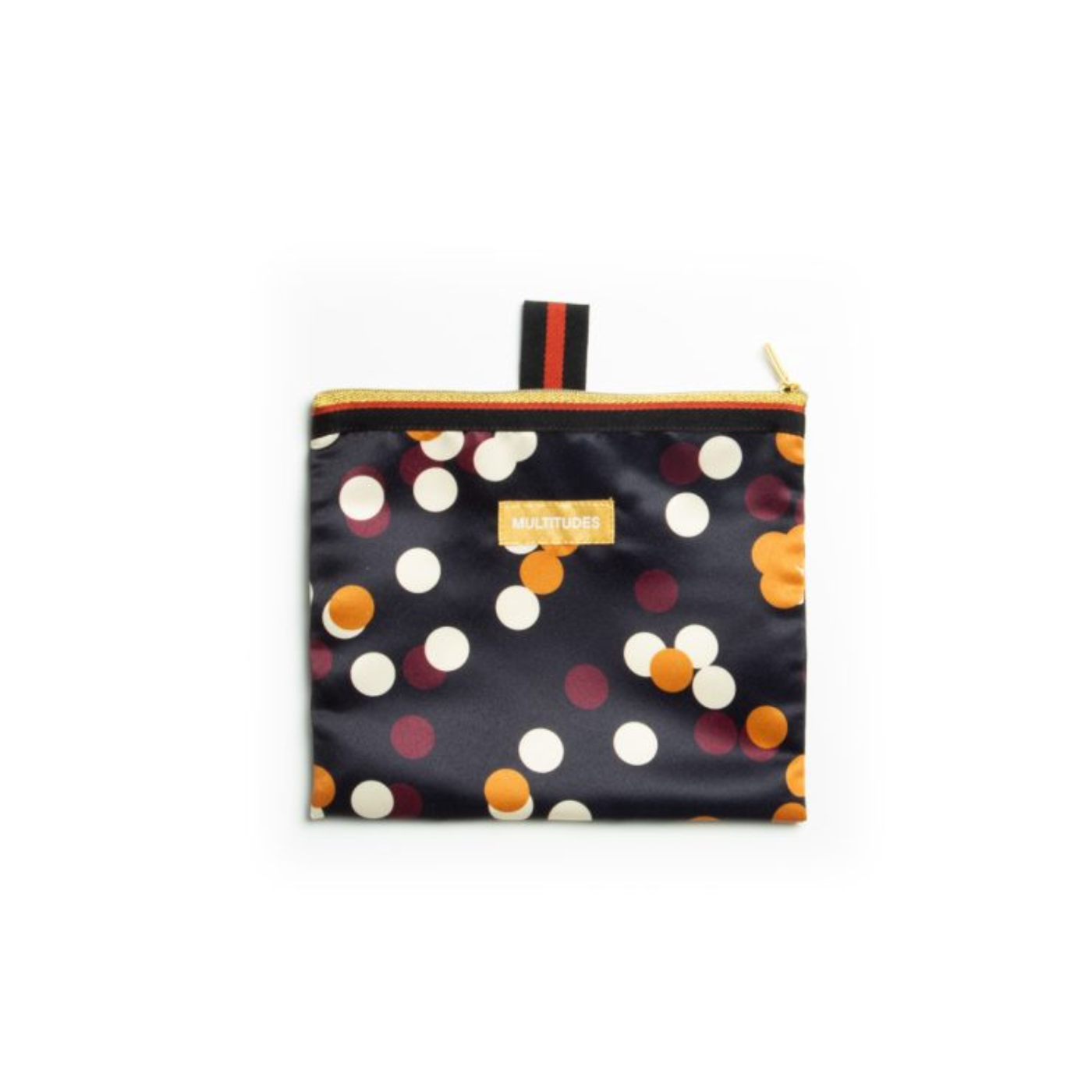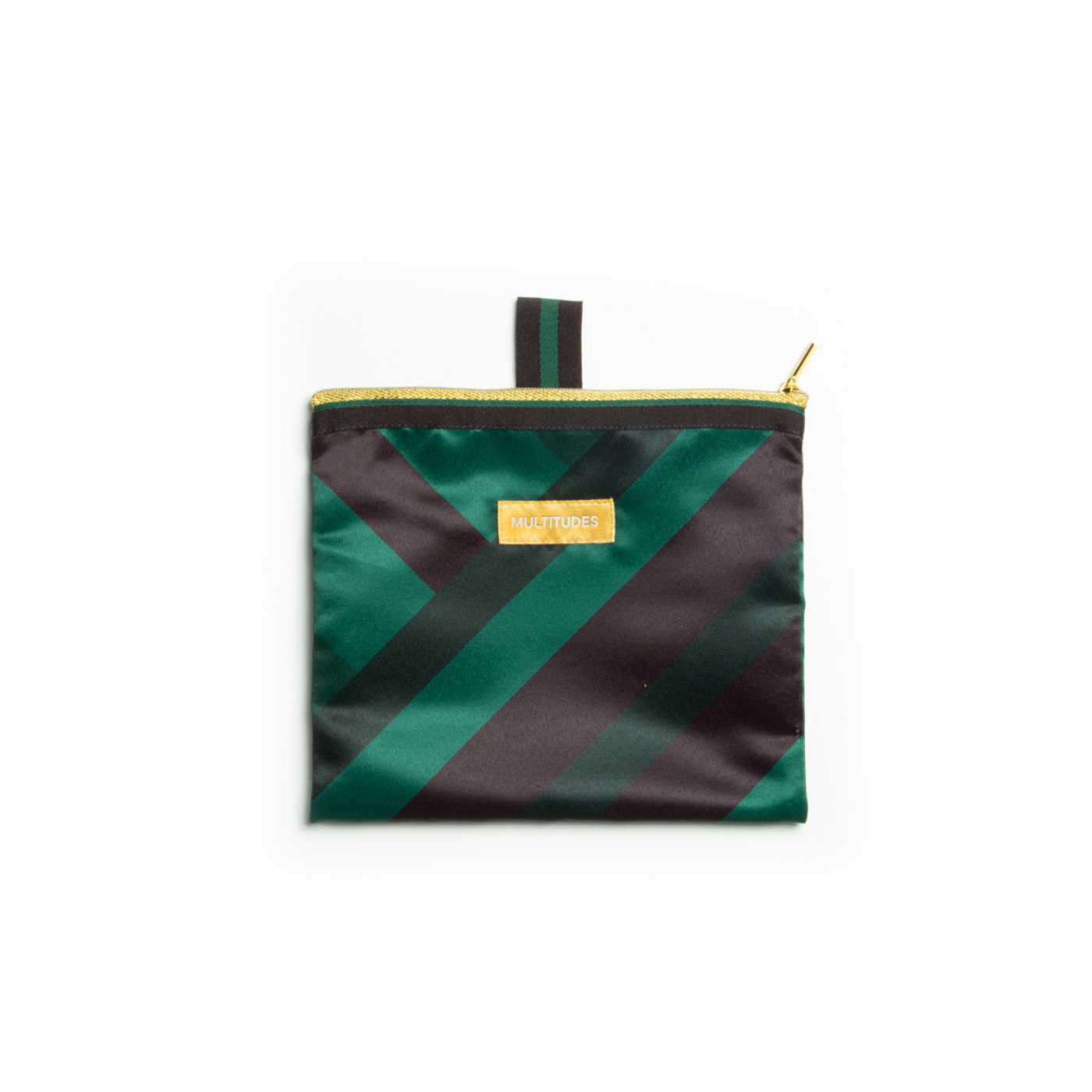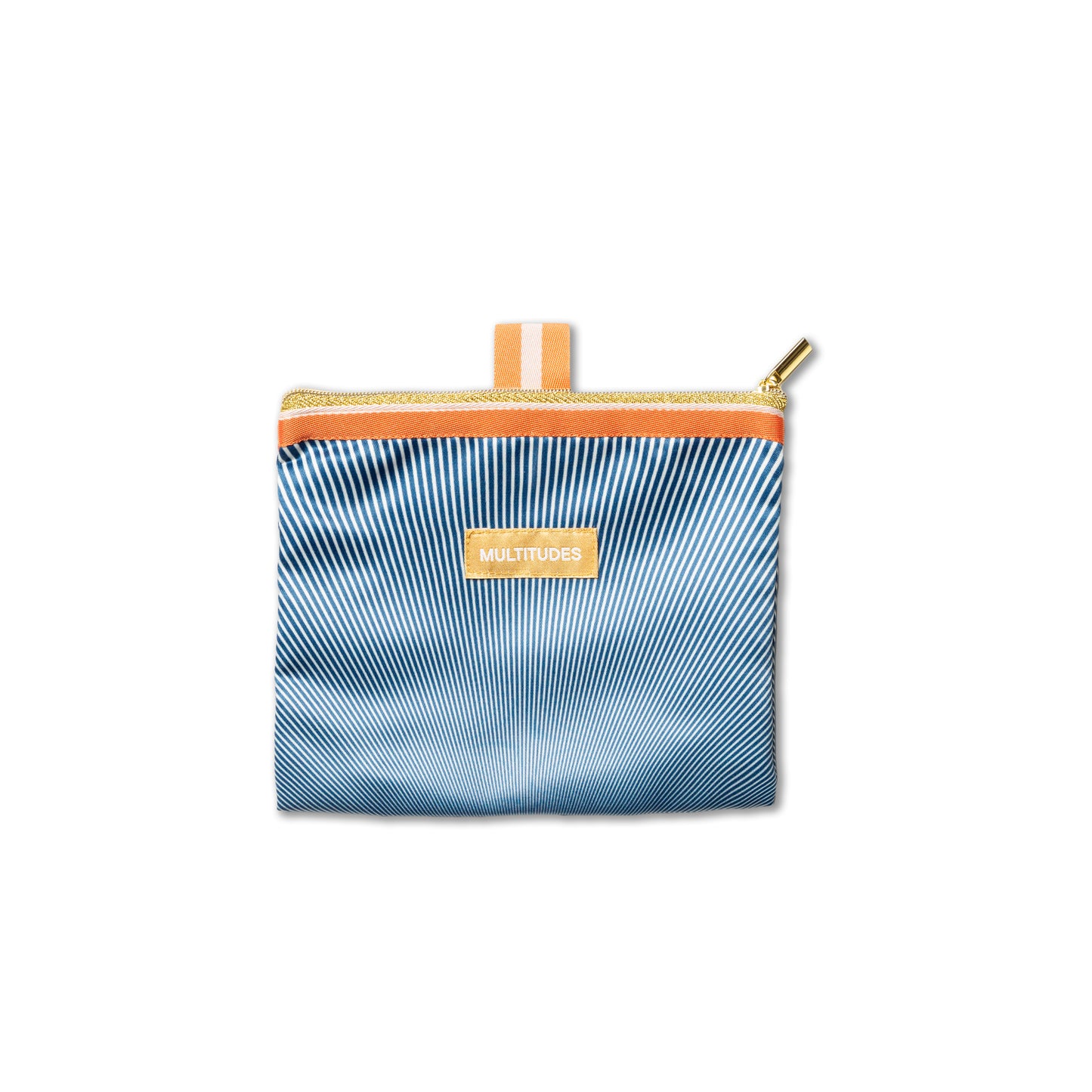 The pouch is made with a silk-effect fabric in 100% recycled polyester, with a golden zip closure. Perfect for carrying keys and other small items to keep safe in your bag or as a case for storing your accessories.