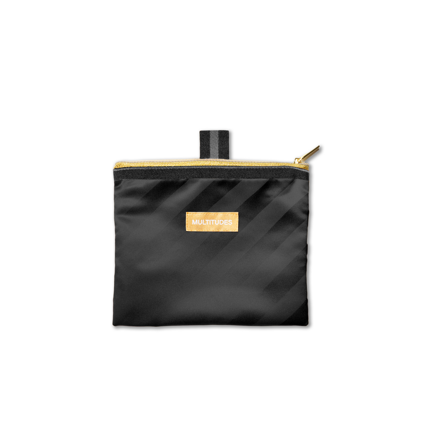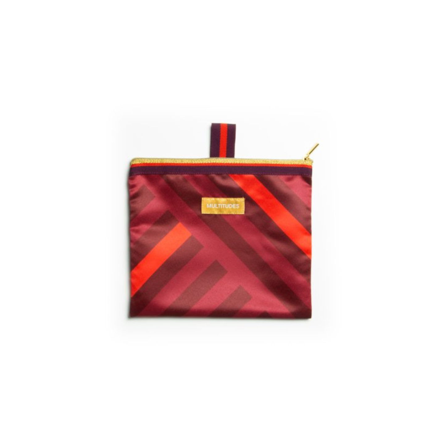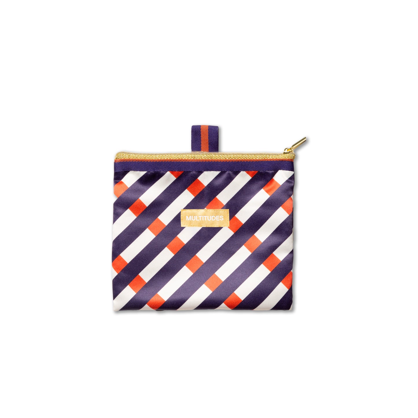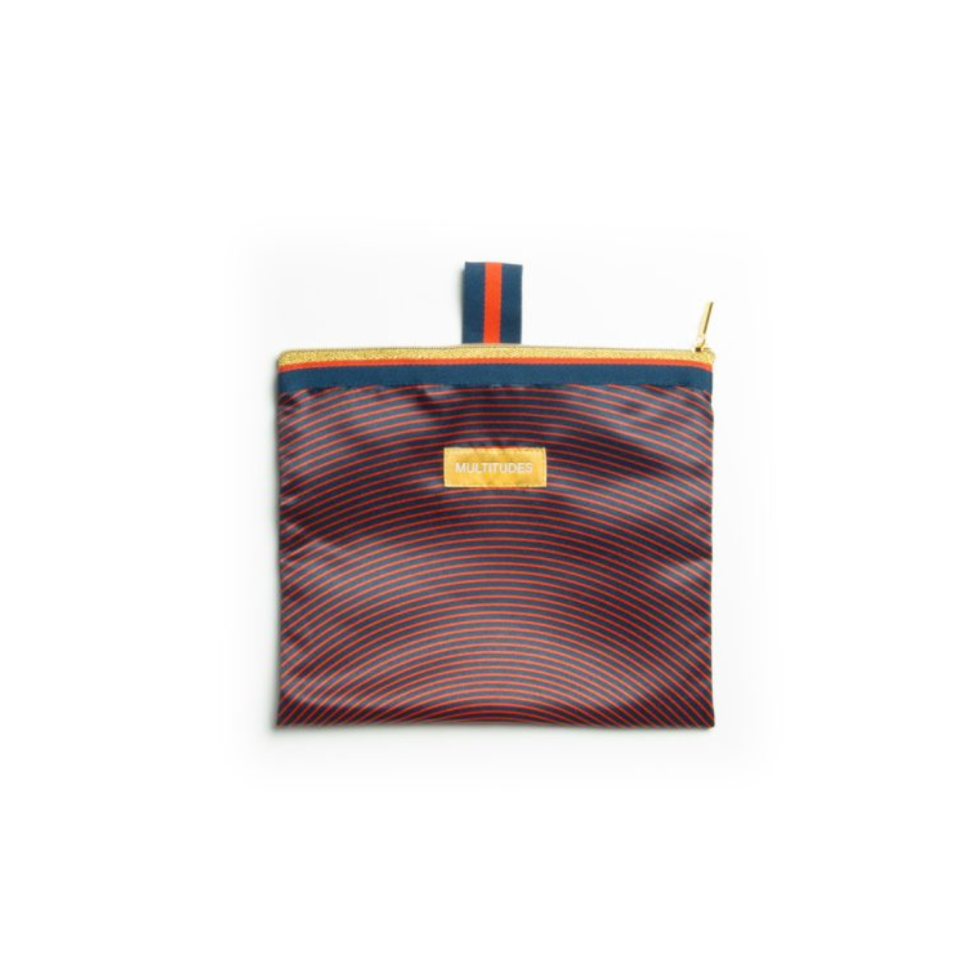 The pouch is made with a silk-effect fabric in 100% recycled polyester, with a golden zip closure. Perfect for carrying keys and other small items to keep safe in your bag or as a case for storing your accessories.