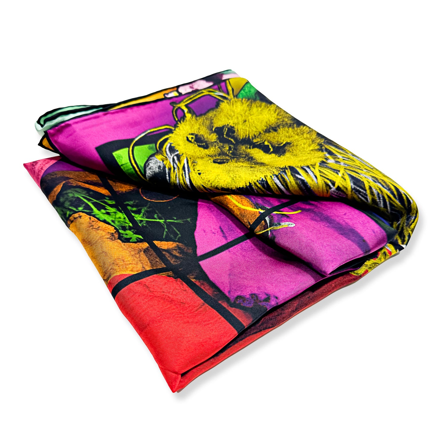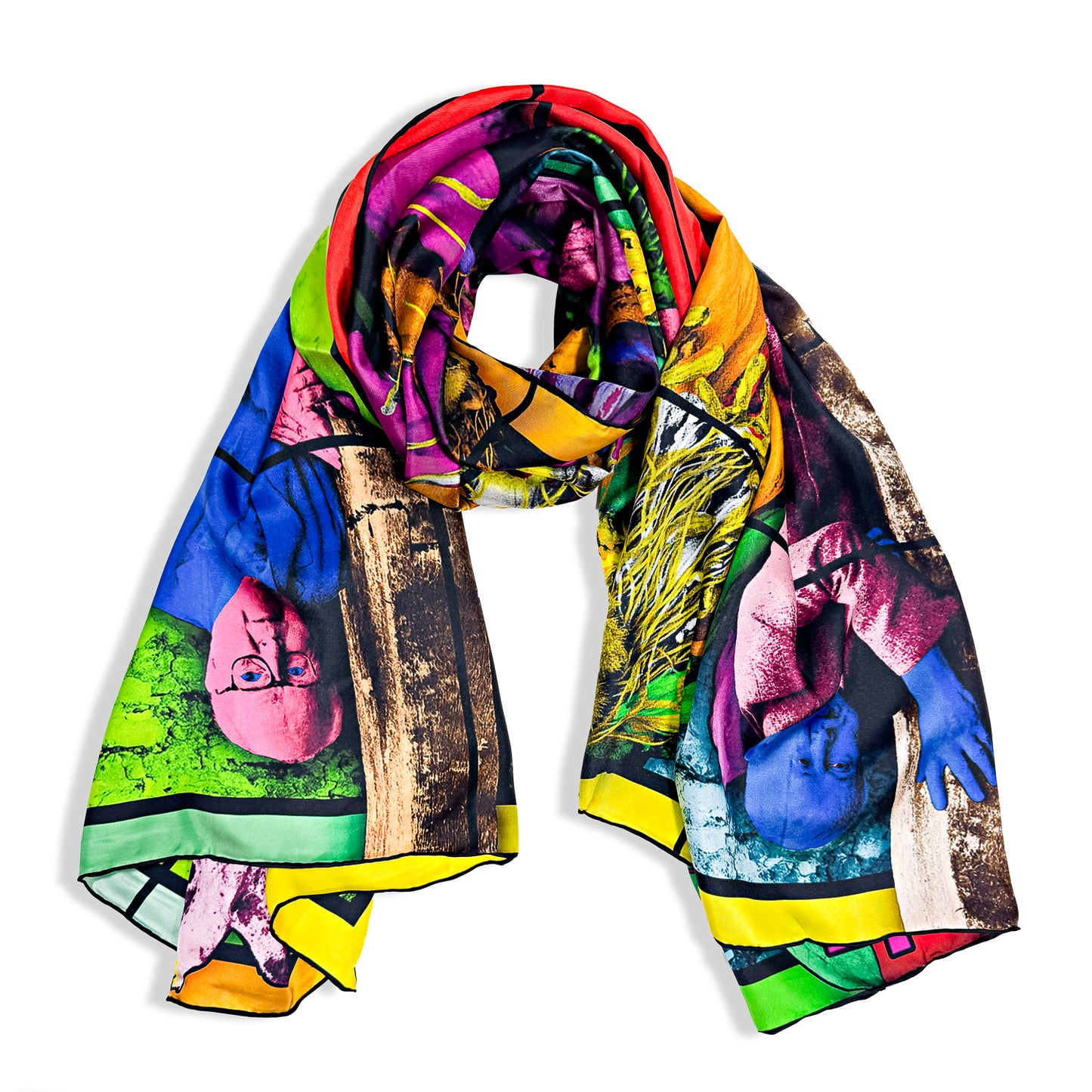 A silk scarf featuring Gilbert & George's work REST, 2019 from the 21ST CENTURY PICTURES exhibition exhibition at the Hayward Gallery.