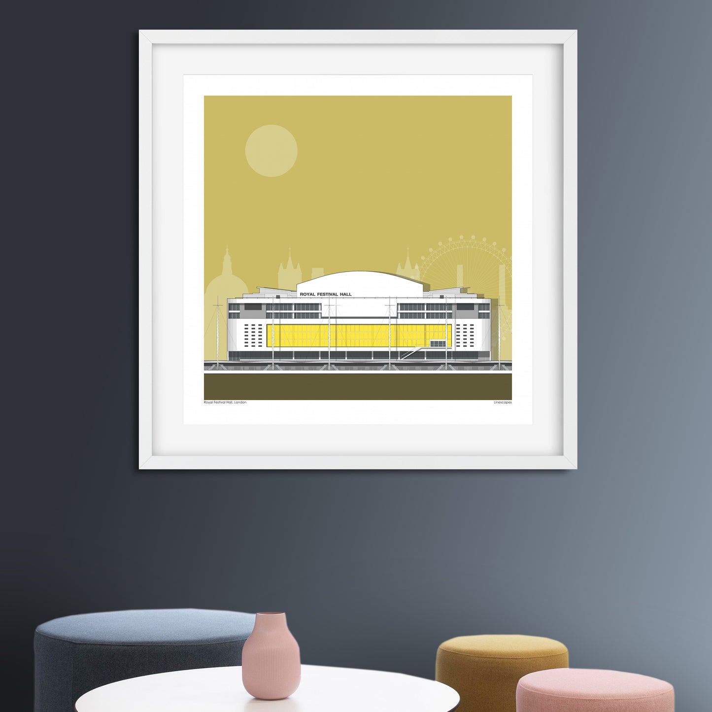 The Royal Festival Hall is a grade I listed concert, dance and talks venue within the Southbank Centre in London. The original 1951 design is depicted in this print.