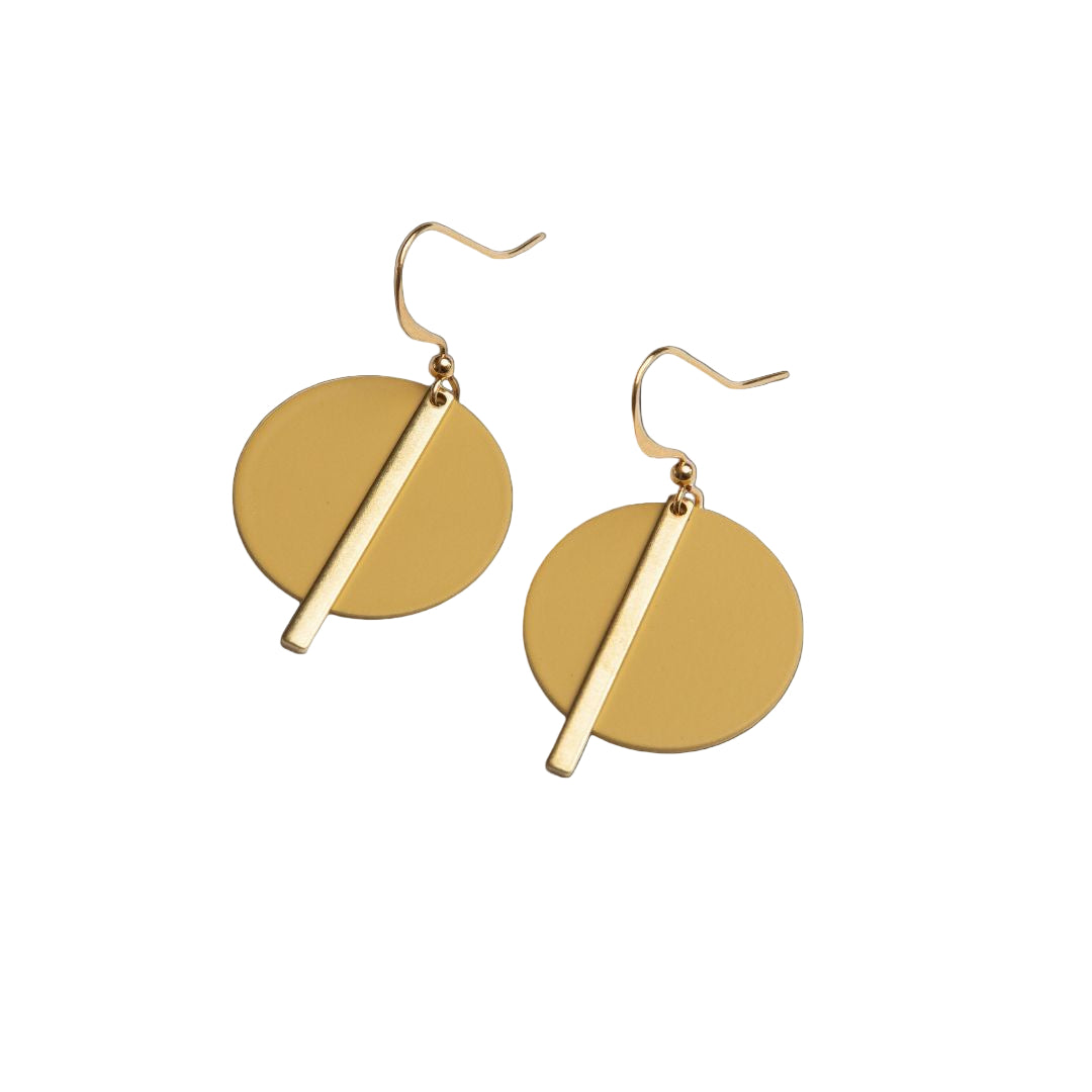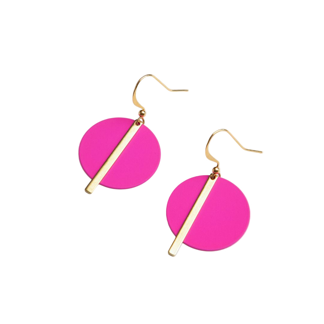 - Gold-plated hooks, lead and nickel free. The colourful discs (2.5cm) have a matte rubberised coating, which give them a smooth finish. These earrings hang to approximately 4cm.
