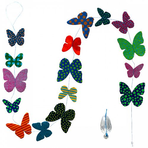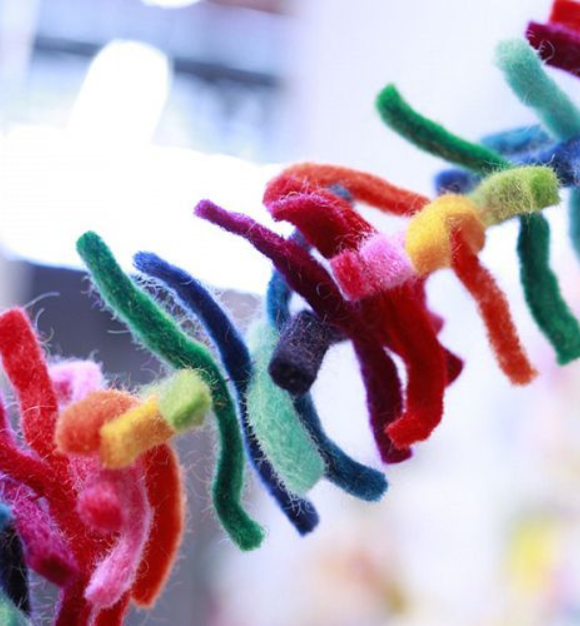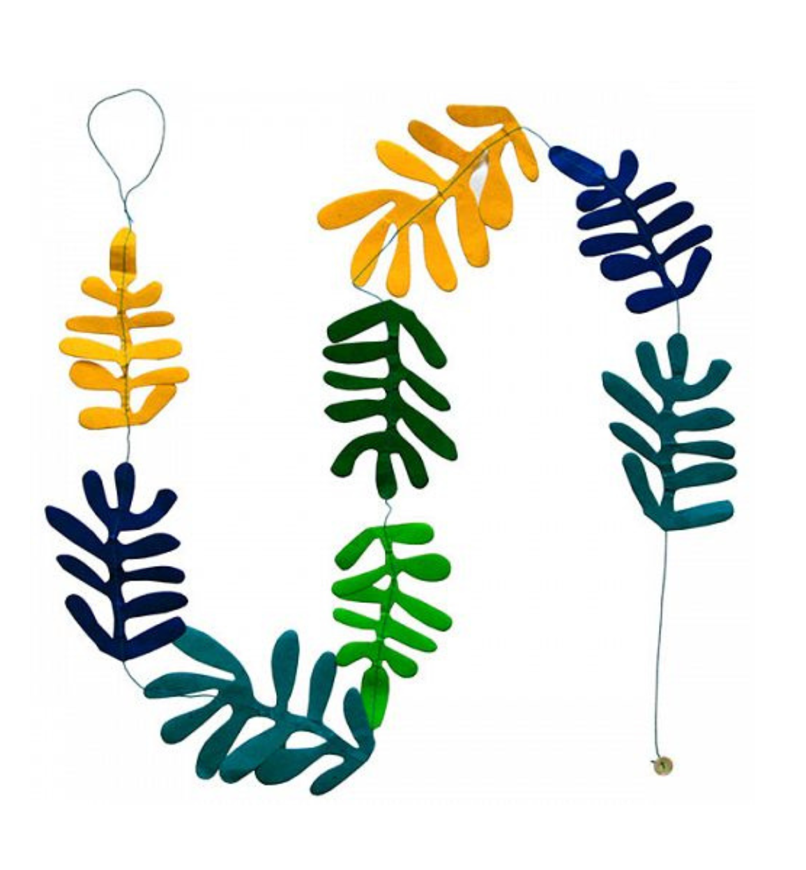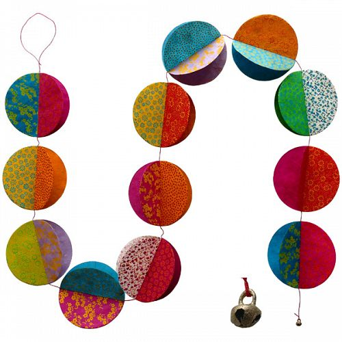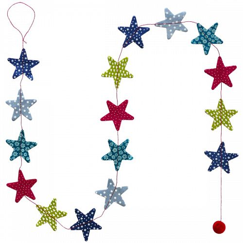 A blue 3-layered stacked candle next to the candle's box packaging.