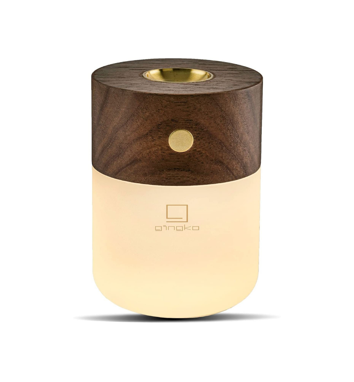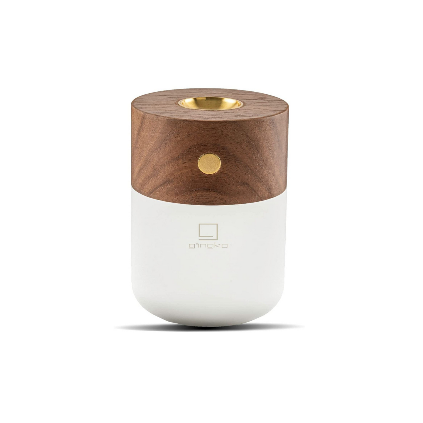 A portable and real wood ambient desk light with a seamlessly integrated copper plate oil burning diffuser. With a handy gold touch sensor control, it gently heats up to fill your room silently and slowly with your favourite scent whilst emitting a beautiful light through a frosted glass.