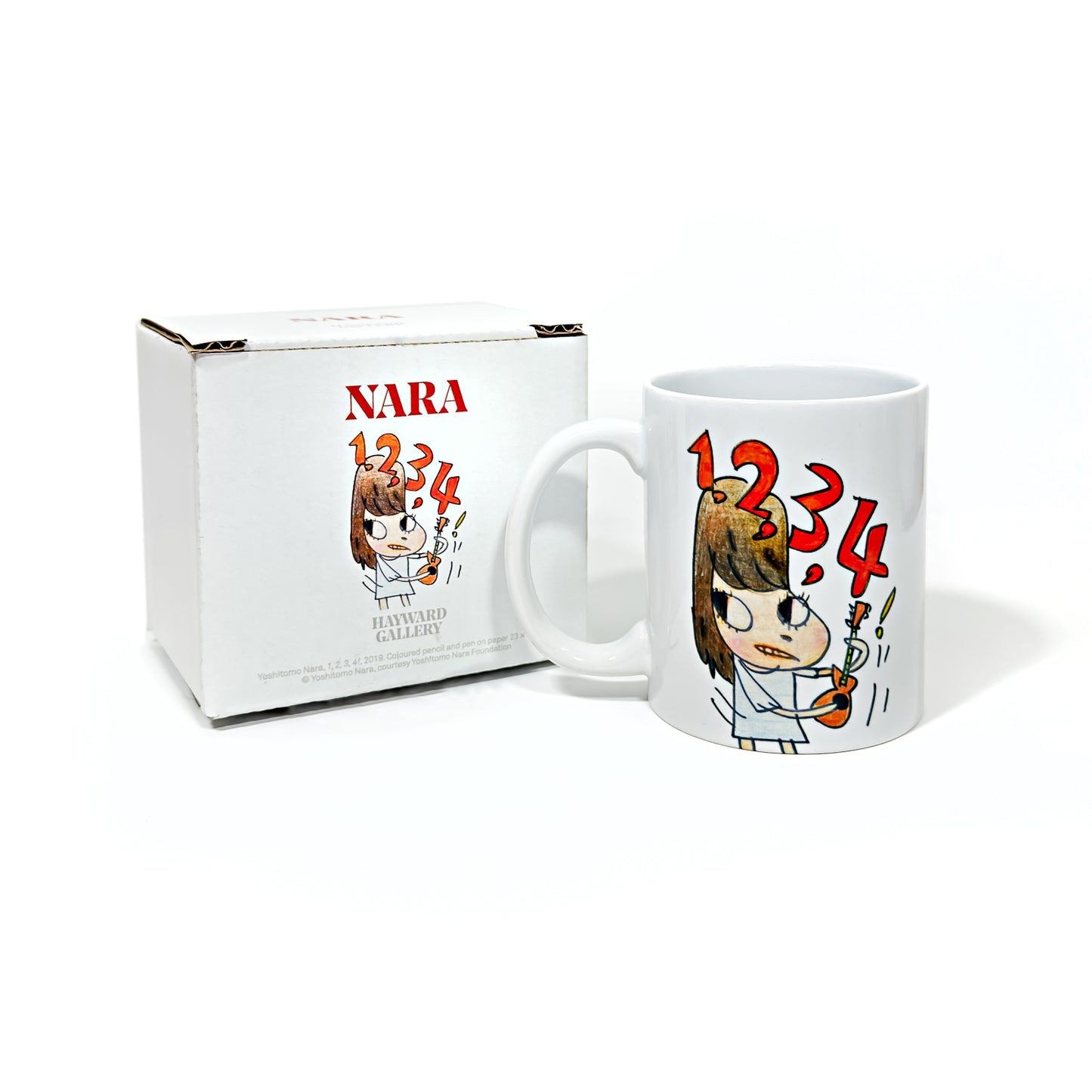 A mug featuring Yoshitomo Nara's work 1, 2, 3, 4!, 2019. Exclusively designed for the Yoshitomo Nara exhibition at the Hayward Gallery.