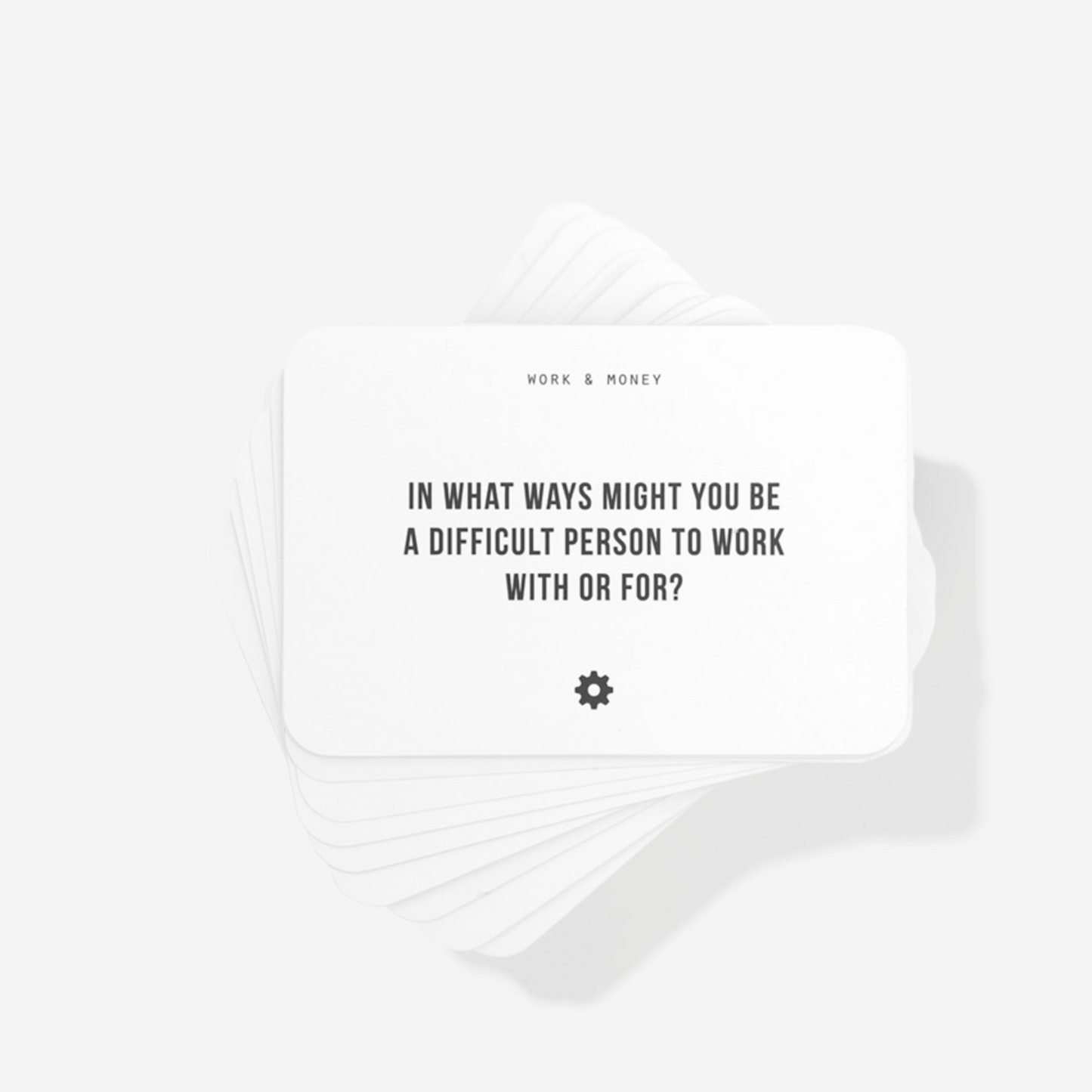 2. Pick a card from anywhere in the box and ask your companions to address the question on it with sincerity and thoughtfulness.