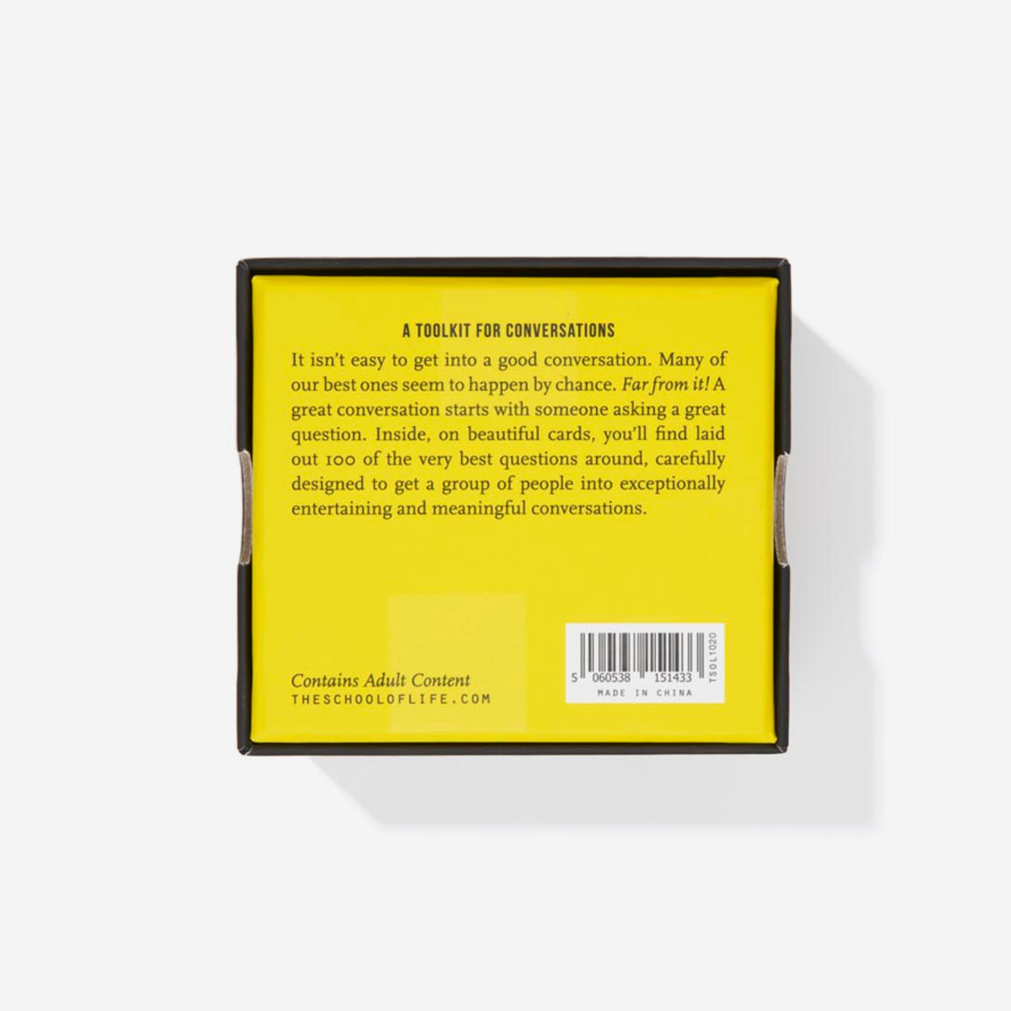 It isn’t easy to get into a good conversation. Many of our best ones seem to happen by chance. Far from it! A great conversation starts with someone asking a great question. Inside, on beautiful cards, you’ll find laid out 100 of the very best questions around, carefully designed to get a group of people into exceptionally entertaining and meaningful conversations.