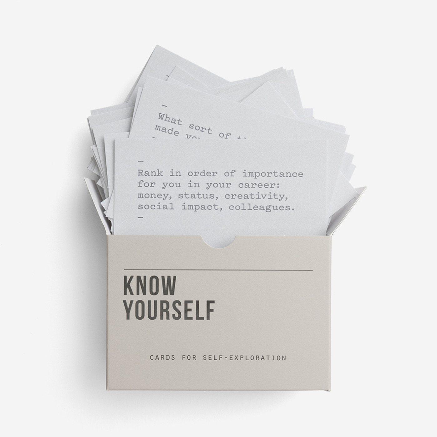 60 prompt cards designed to help lead you through the important task of knowing yourself a little better in life.