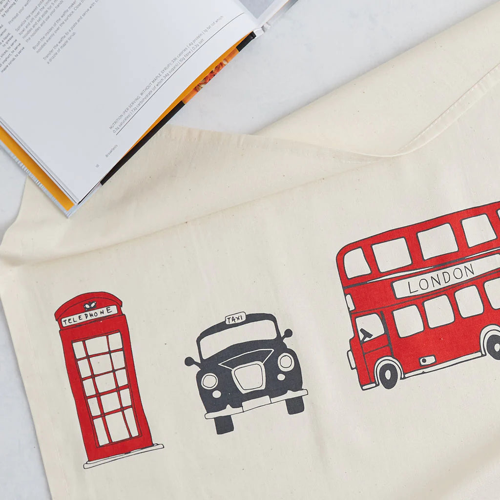 Including Big Ben, the London Eye, London bus, taxi, post box and telephone box. This tea towel by Victoria Eggs will make you smile in the kitchen as well as help with the washing up.