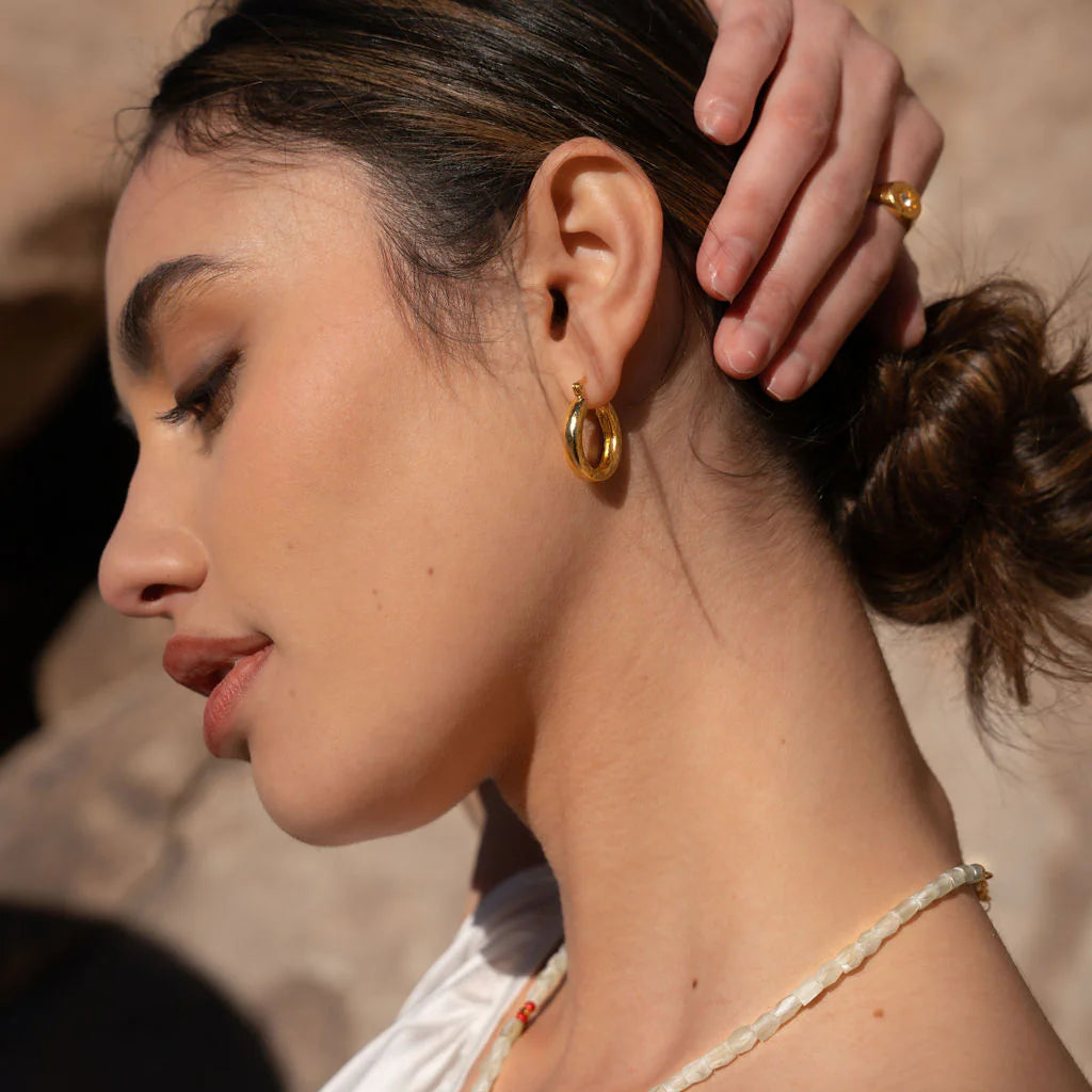 Bring a minimal chic feel to your ear stack with the Ottoman Hands Caprice Hoop Earrings. Secured with a clasp fastening, these oval shaped hoops are hand finished with a lightly hammered texture and will compliment any look with its versatile design.