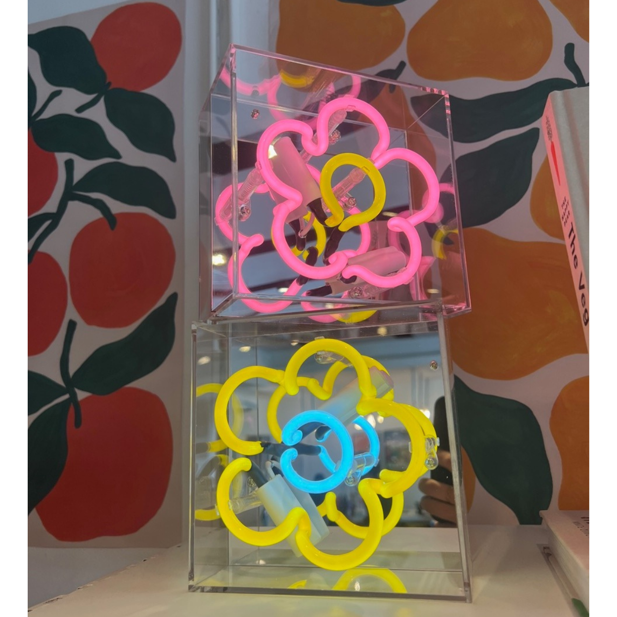 The ‘Daisy’ glass neon box sign brings a cool authentic glow to your home. Playful retro style. It’s a must-have statement lighting piece that also makes a fabulous gift!