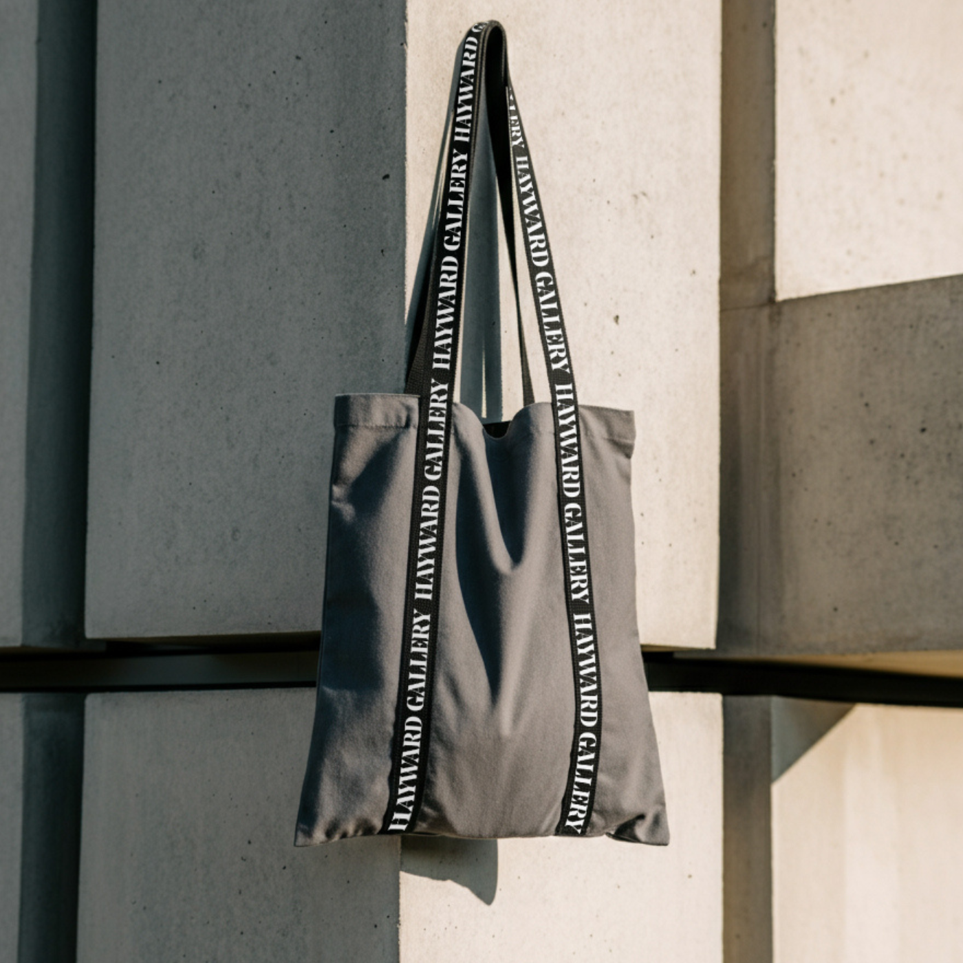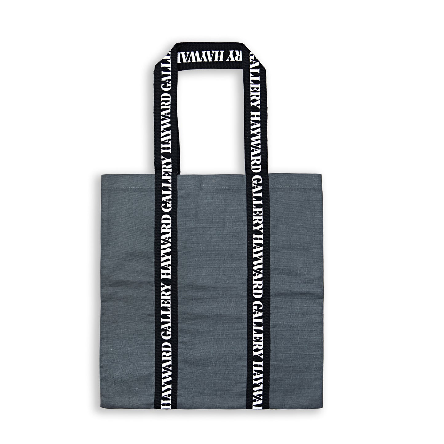 Hayward Gallery tote bag in grey with ribbon design straps.