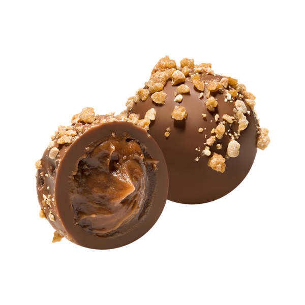 Ingredients: Sugar, cocoa butter, whole MILK powder, HAZELNUT (NUTS), fresh cream (MILK), glucose, cocoa mass, sorbitol, alcohol, emulsifier: SOYA lecithin, natural flavouring.