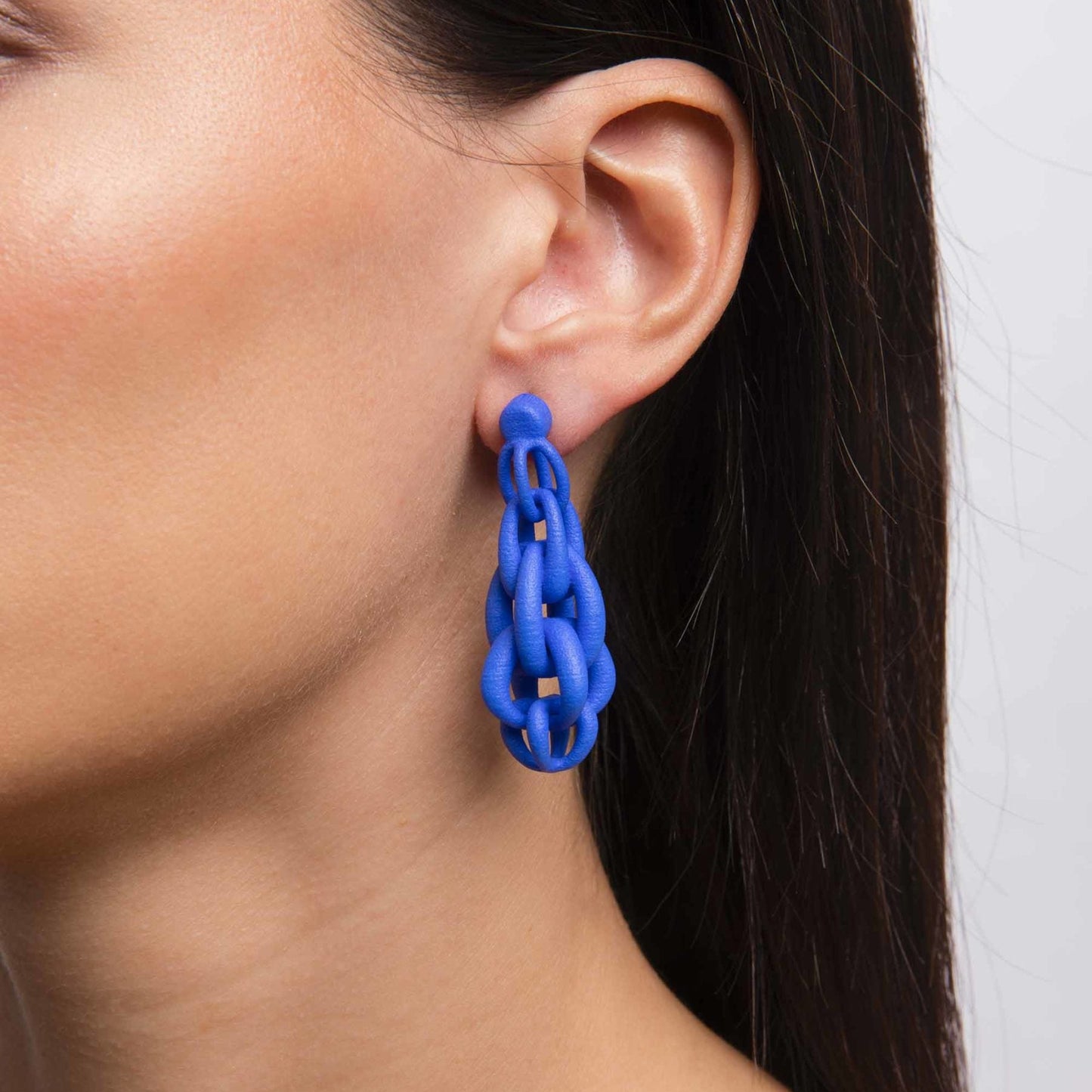 Extremely lightweight 3D printed chain earrings by Maison 203.