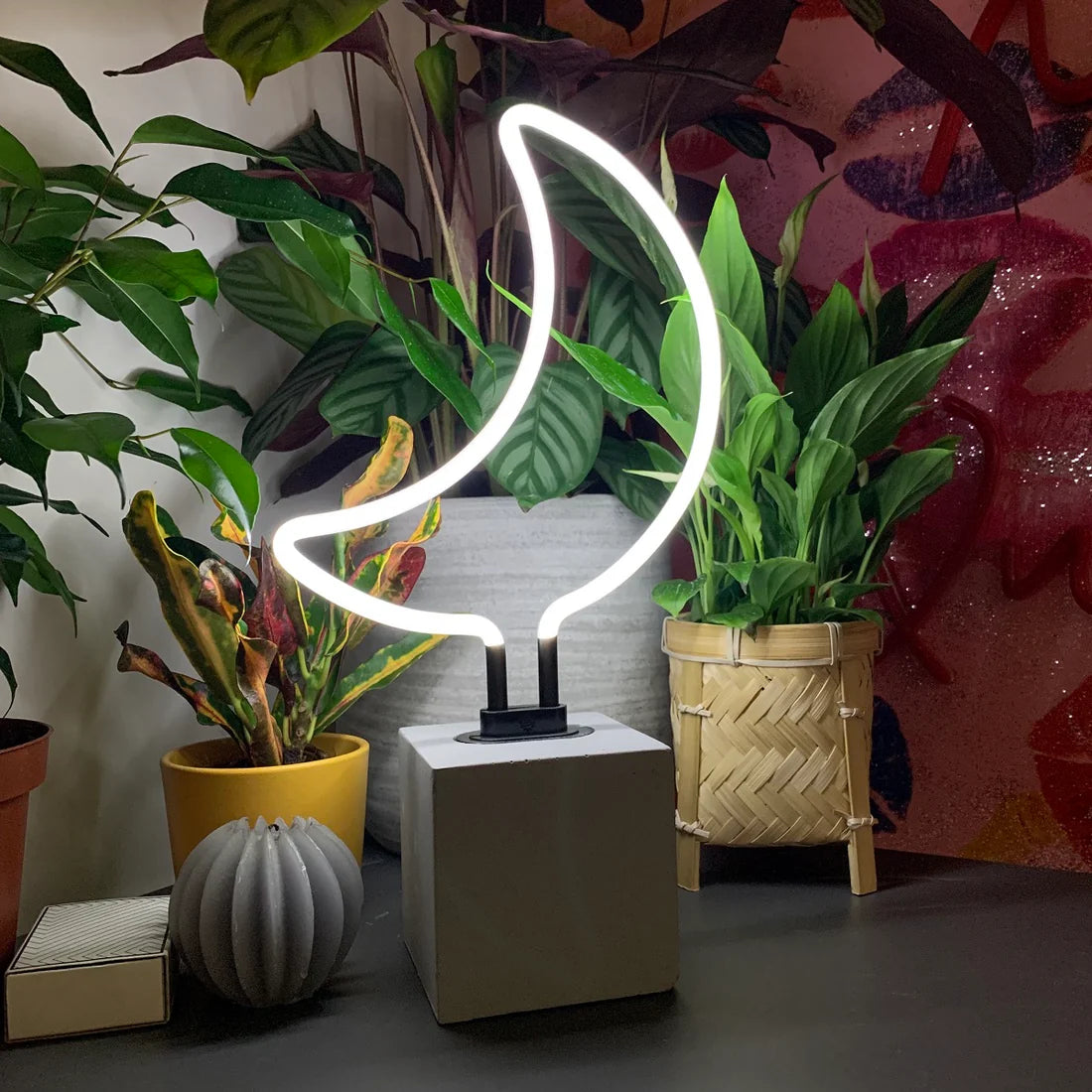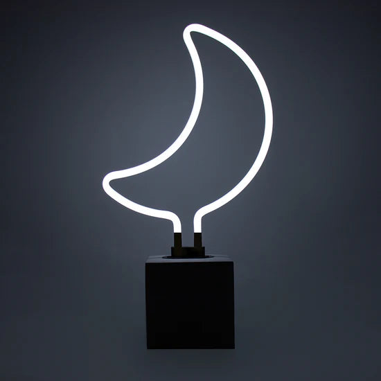 The neon ‘Moon' sign is a Locomocean classic. This table top neon lamp is made by hand with real glass neon and is mounted on a stylish concrete base. Fun and unique lighting, championing that real retro neon glow you just can’t beat.