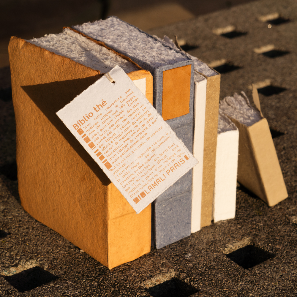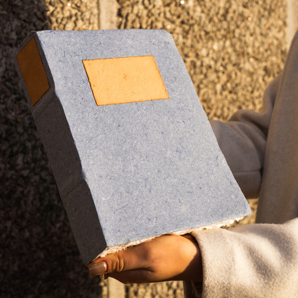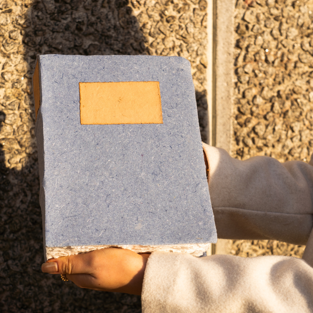 This hand made notebook is made from 120gsm 100% cotton rag features a sewn binding and rough deckle edge finish for added charm. Each note book is finished with a contrast cover and sculptured spine for a traditional library feel.