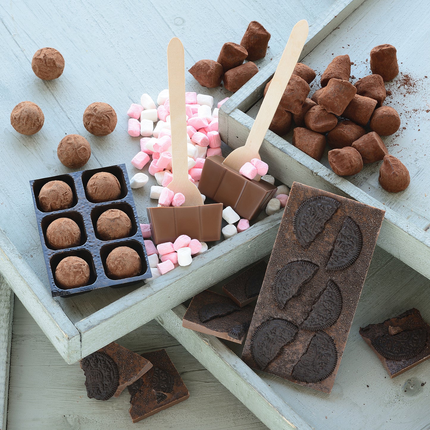 Ingredients: Glucose, sugar, cocoa butter, whole MILK powder, cocoa powder, cocoa mass, sweetened condensed skimmed MILK, butter (MILK), salt, emulsifier (SOYA) lecithin, natural flavouring.