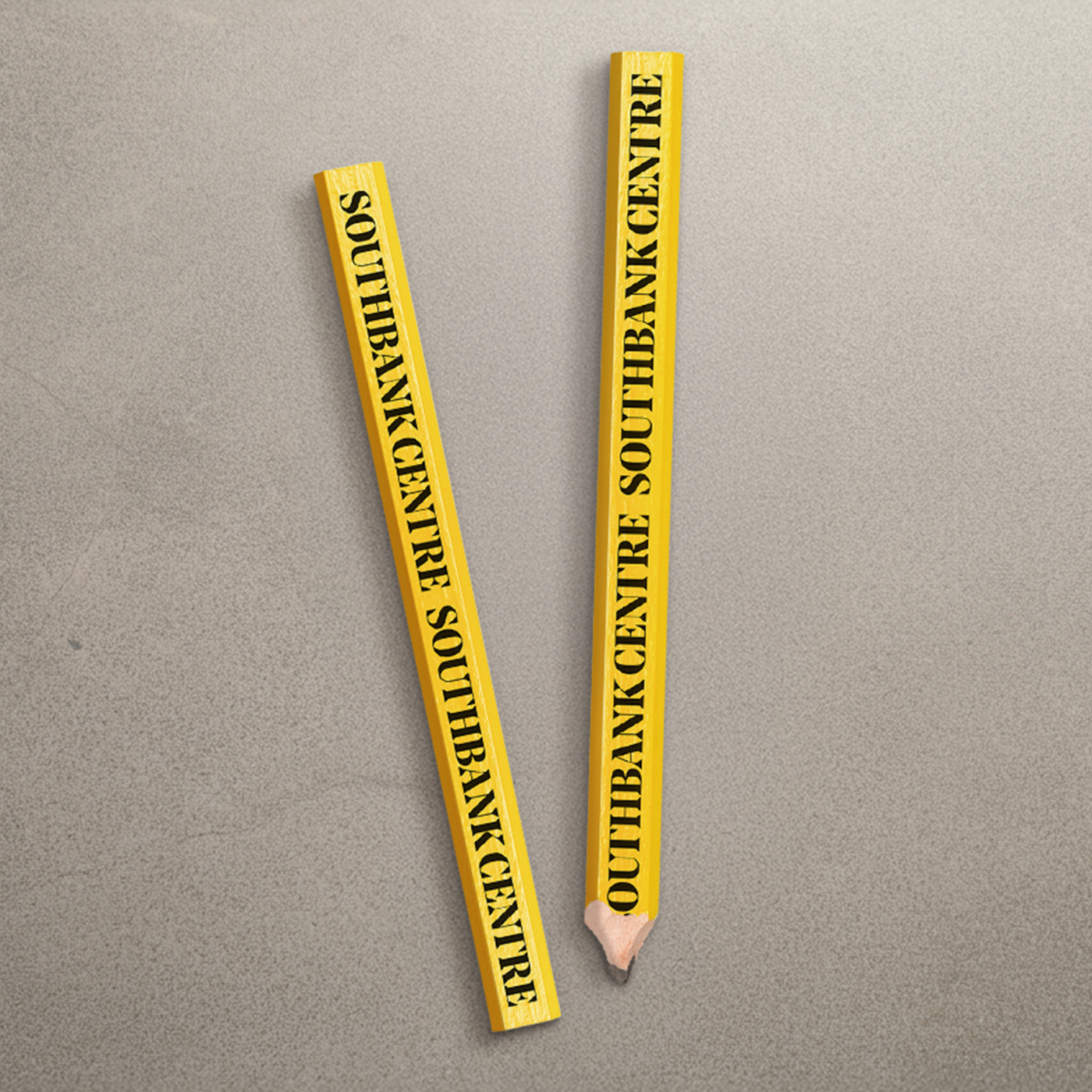 Southbank Centre traditional octagonal carpenter pencil in yellow with ribbon design.