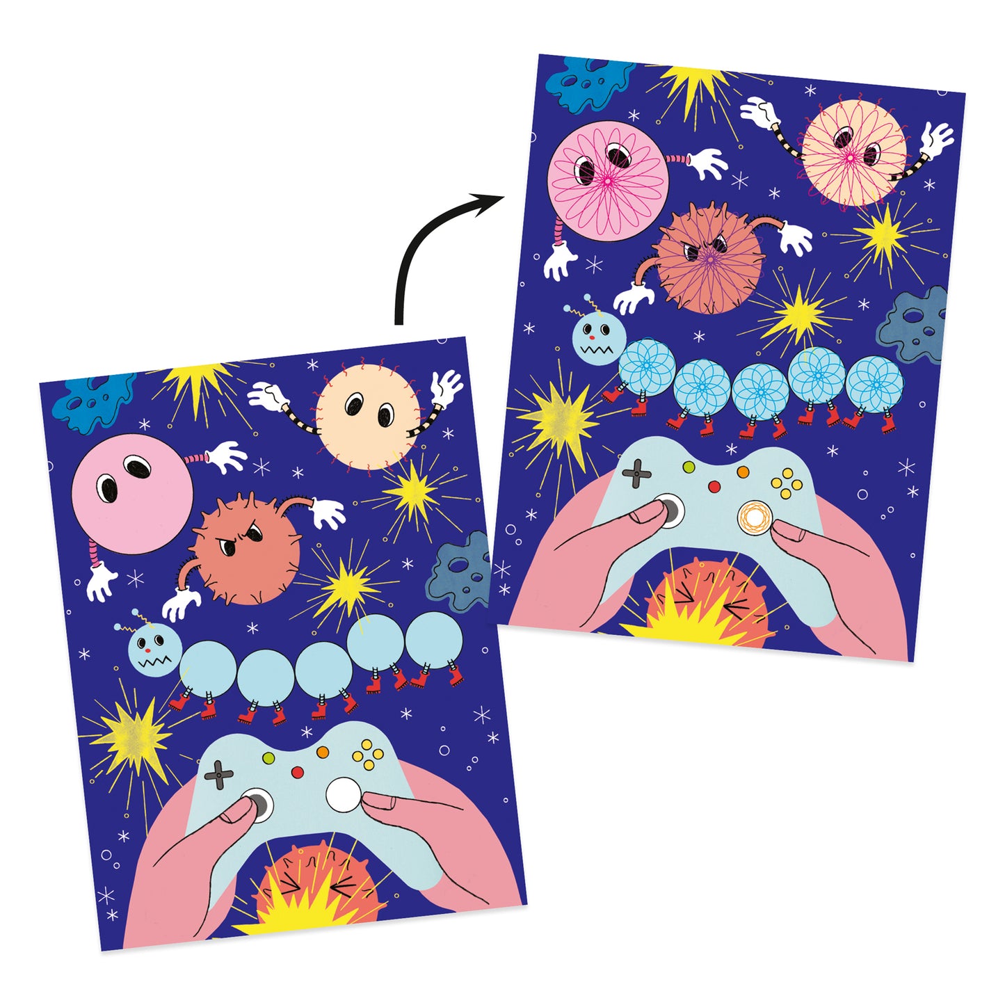 A drawing set to make superb colored spirals and thus complete the boards offered in this block of 30 pages whose illustrations cover 10 different themes. A classic activity revisited by Djeco thanks to clever tools that allow you to make the spirals without moving! The child places his sheet on the metal plate, then applies the magnetic frame in which he inserts the toothed wheel. Equipped with his pen, he describes circles to easily draw his rosette without having to keep the frame in place.