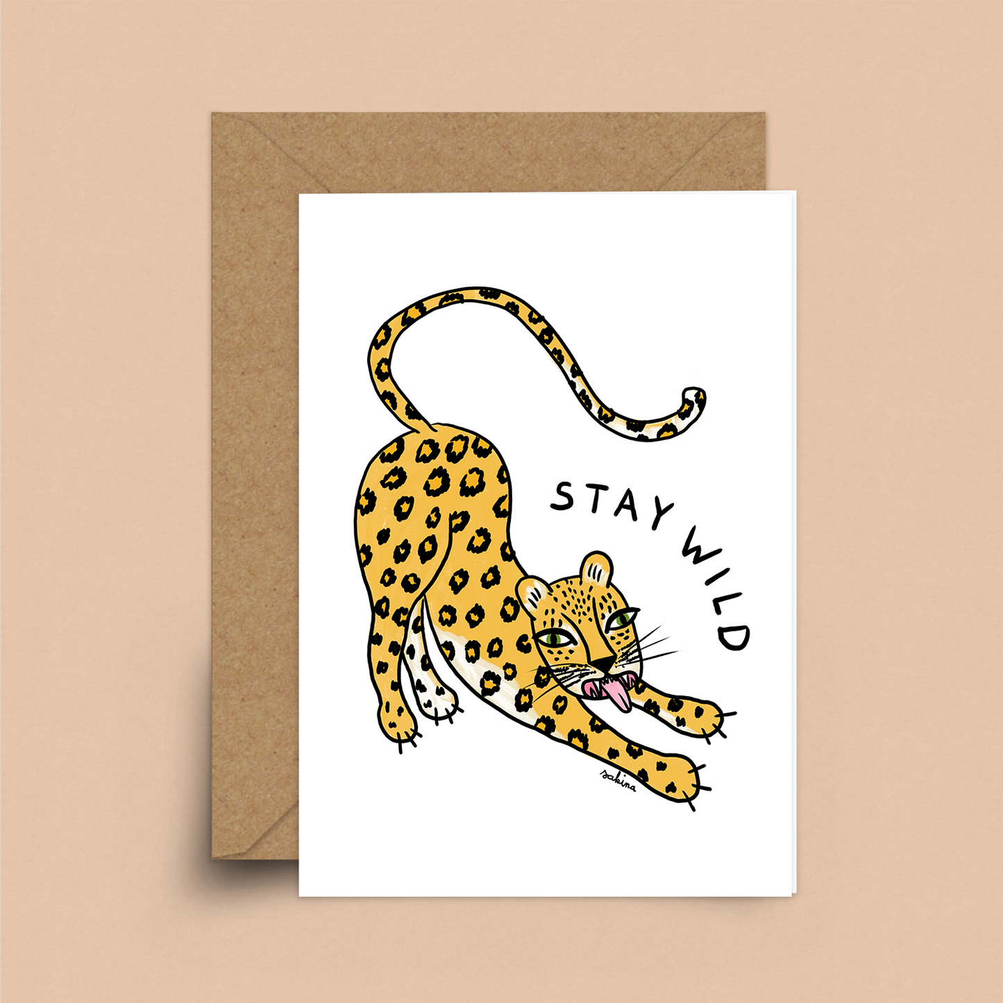 Greeting card by Heyimsakina printed in the UK on FSC certified 300gsm warm white recycled board.