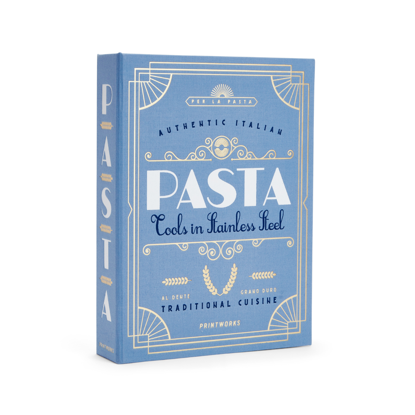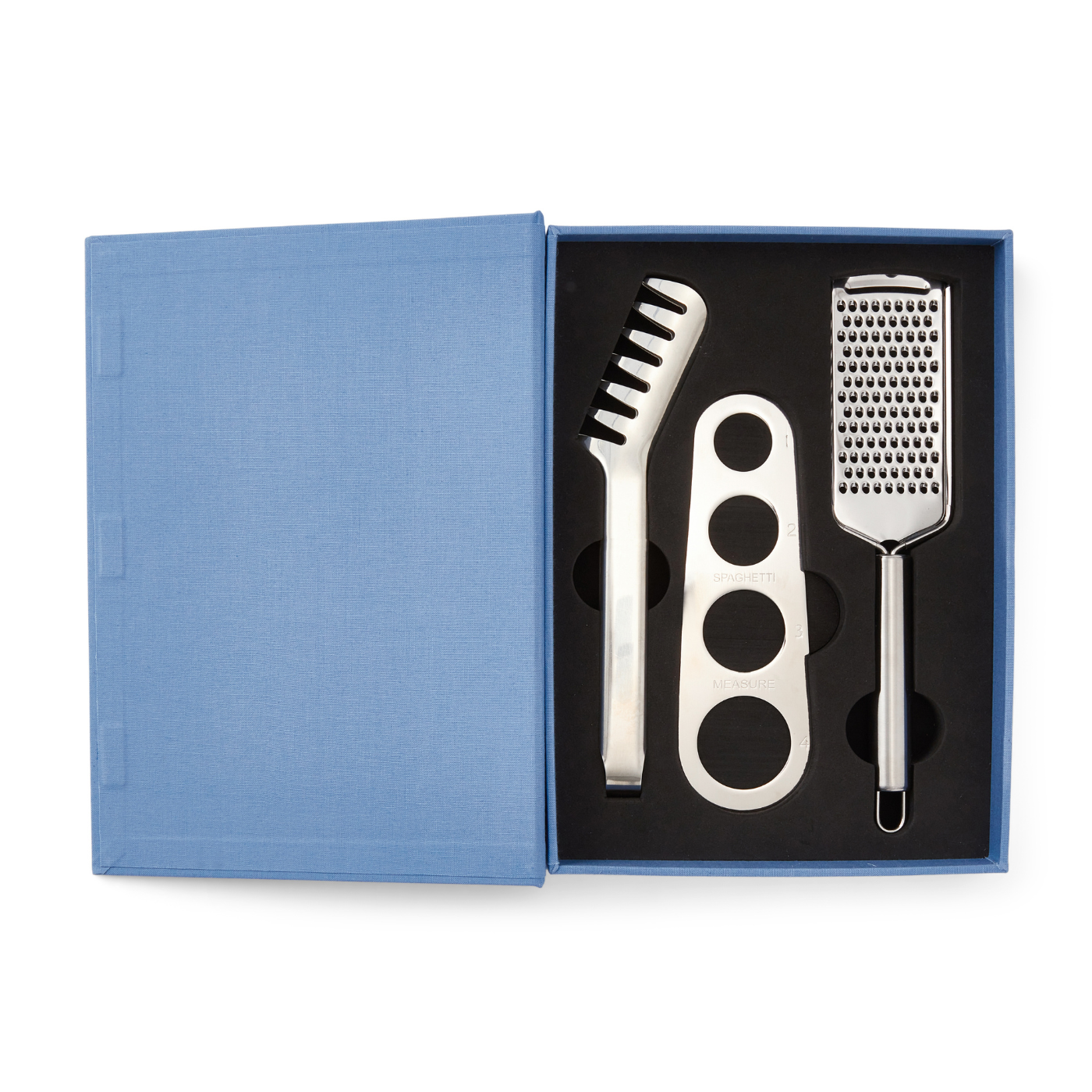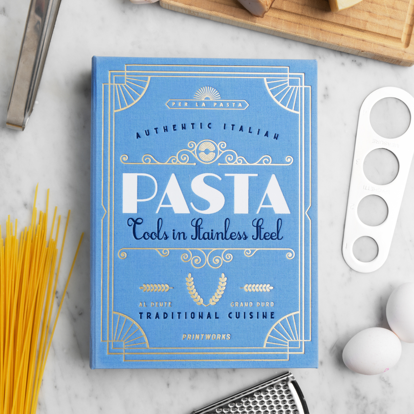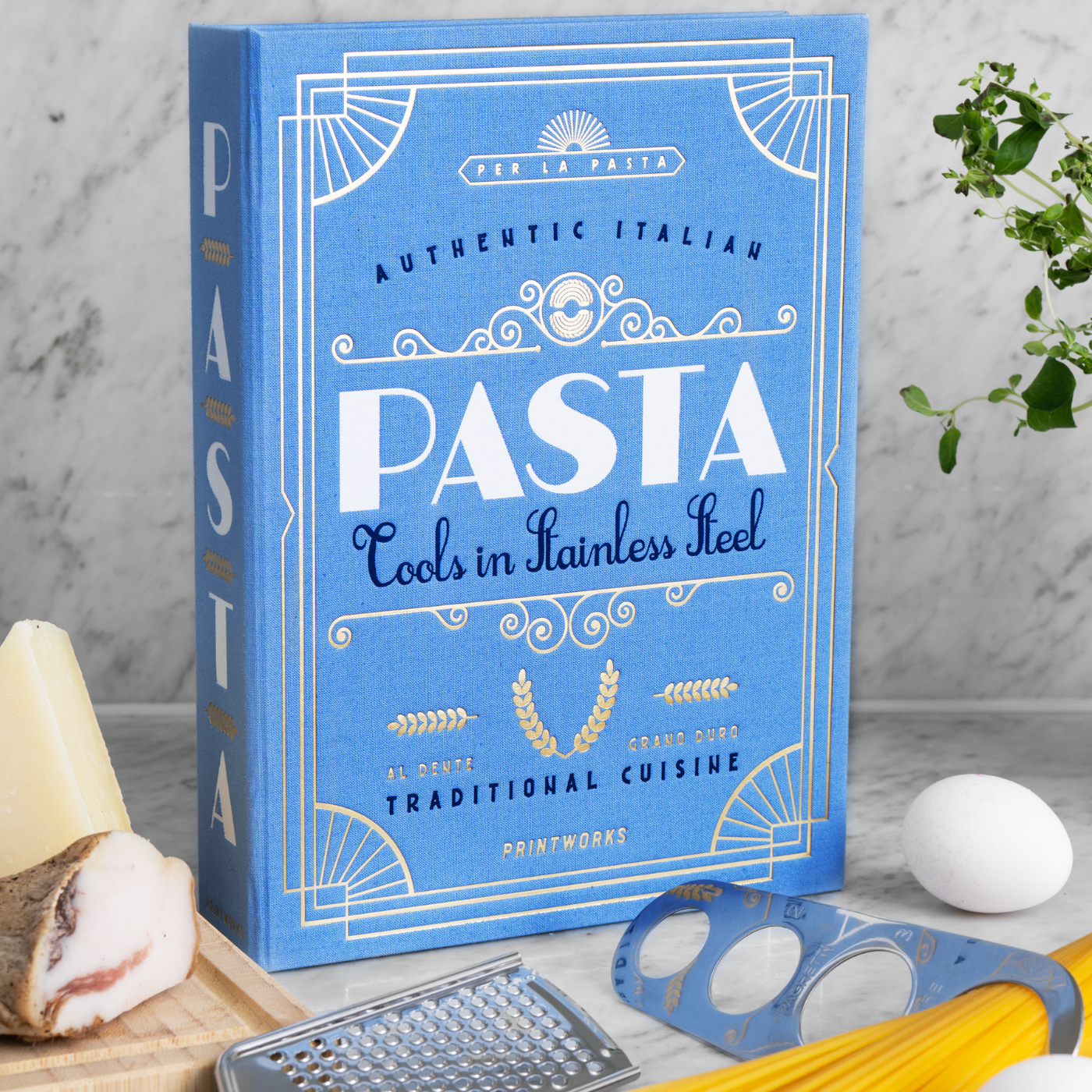 Discover the Essential Kit for Pasta Nights, cleverly disguised as an elegant book-like box. It is the perfect fusion of aesthetics and functionality. Upon opening it, you will discover all the essential tools for hosting successful pasta dinners. All tools are made of stainless steel and are dishwasher safe.